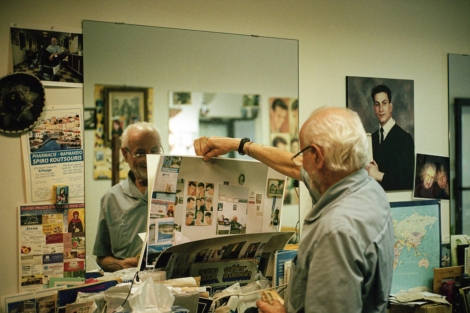 Il commence à travailler comme apprenti barbier sur la rue Saint-Viateur, se fait rapidement ami avec tout le quartier, mais le salon est la proie des flammes à la suite d’une embrouille du patron. Comme si le feu le suivait. « Une partie de ma vie a brûlé ce soir-là », mentionne-t-il, expliquant les coupures de photos noircies.
