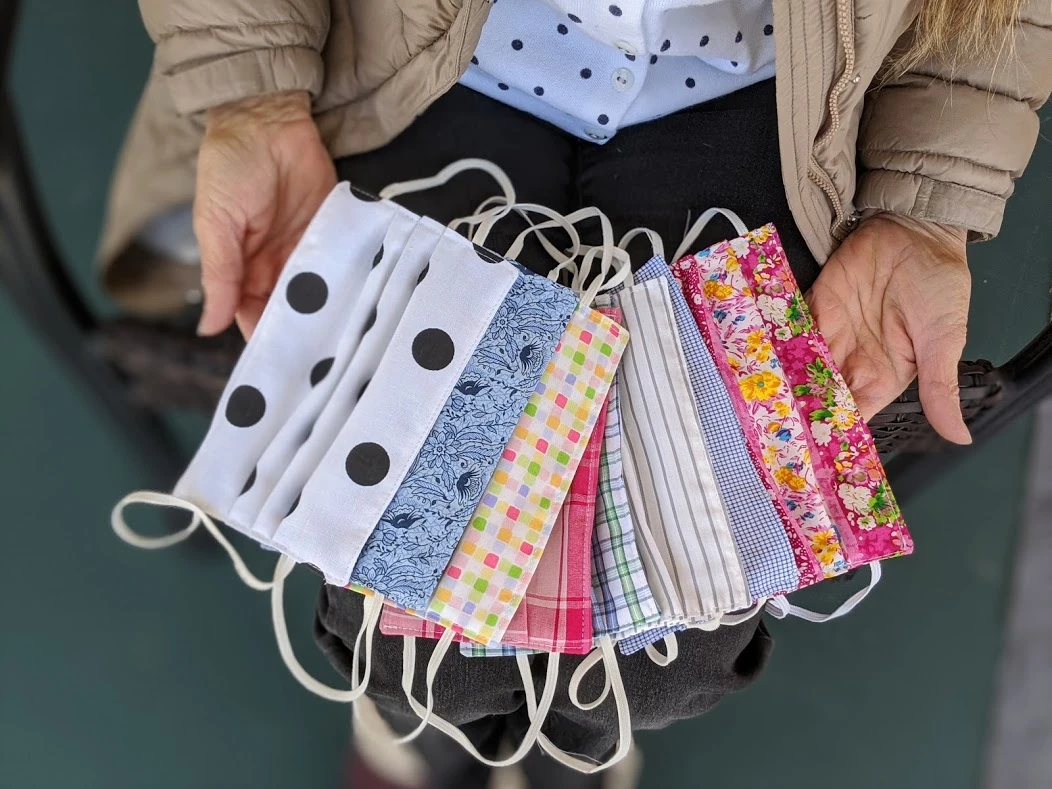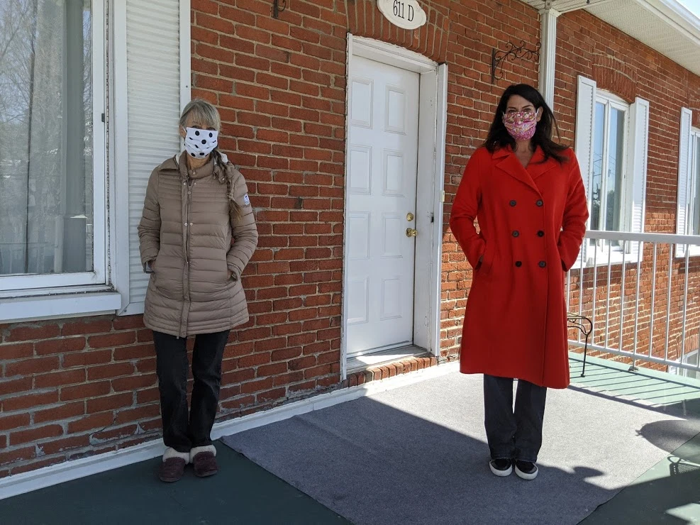 Sur leur balcon de la rue Saint-Joseph, Stéphanie et sa voisine Gaétane, une couturière de 69 ans, m’attendent pour me remettre six masques homemade, produits qu’elles fabriquent depuis quelques heures à peine. Les deux Julievilloises ont décidé d’unir leurs forces pour proposer un produit local (et joli!), après avoir entendu l’appel de la santé publique selon lequel le port du masque non-médical en public est recommandé.