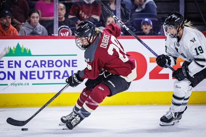 -J’ai rendez-vous avec Catherine Dubois. Vous la connaissez peut-être? Elle joue dans la nouvelle Ligue professionnelle de hockey féminin (LPHF)!