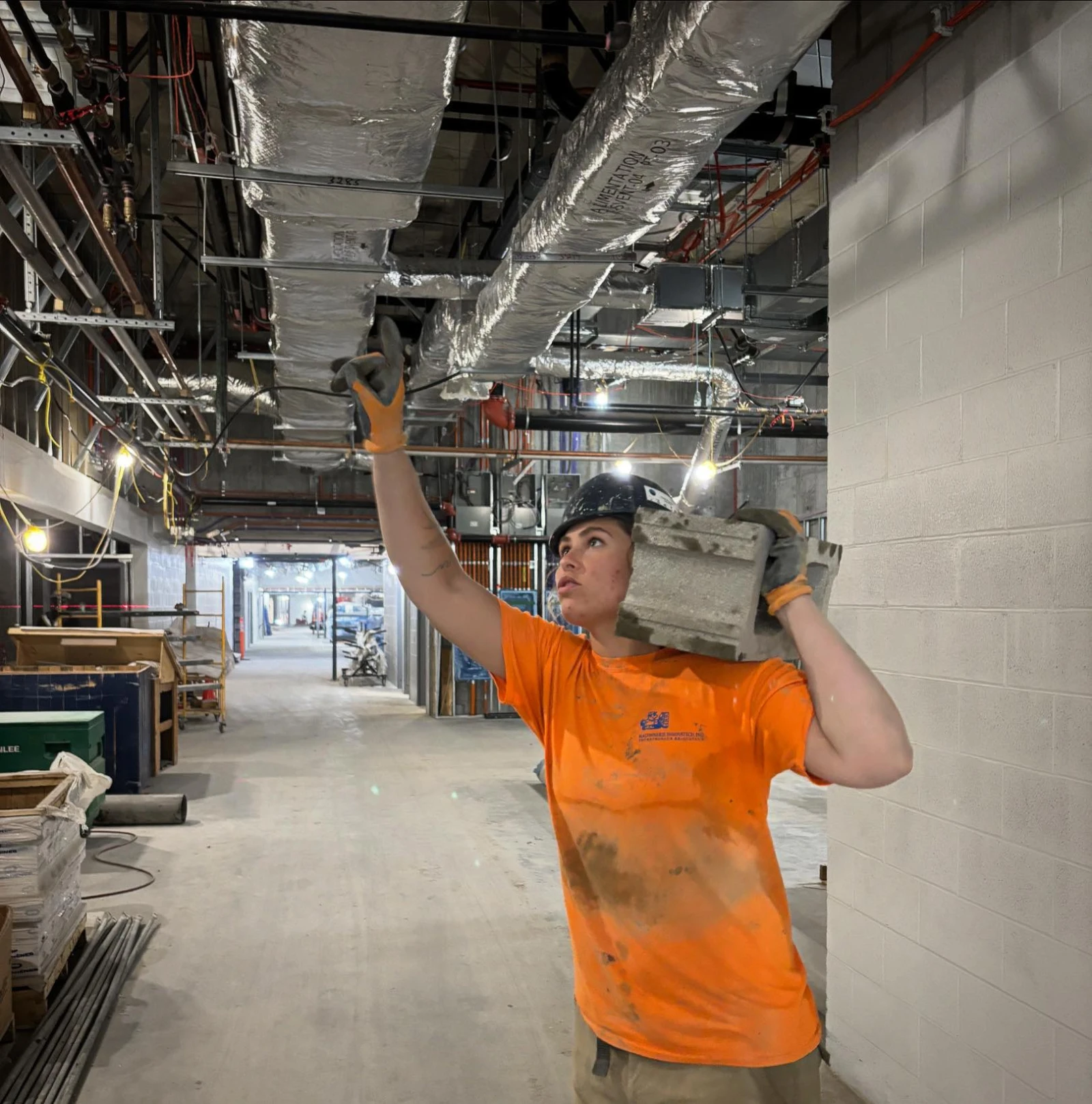 Dans un labyrinthe de couloirs de plâtre, de béton et d’échafaudages, Catherine passe inaperçue. En fait, si on la remarque, c’est sans doute parce qu’elle est l’une des rares filles sur le chantier.