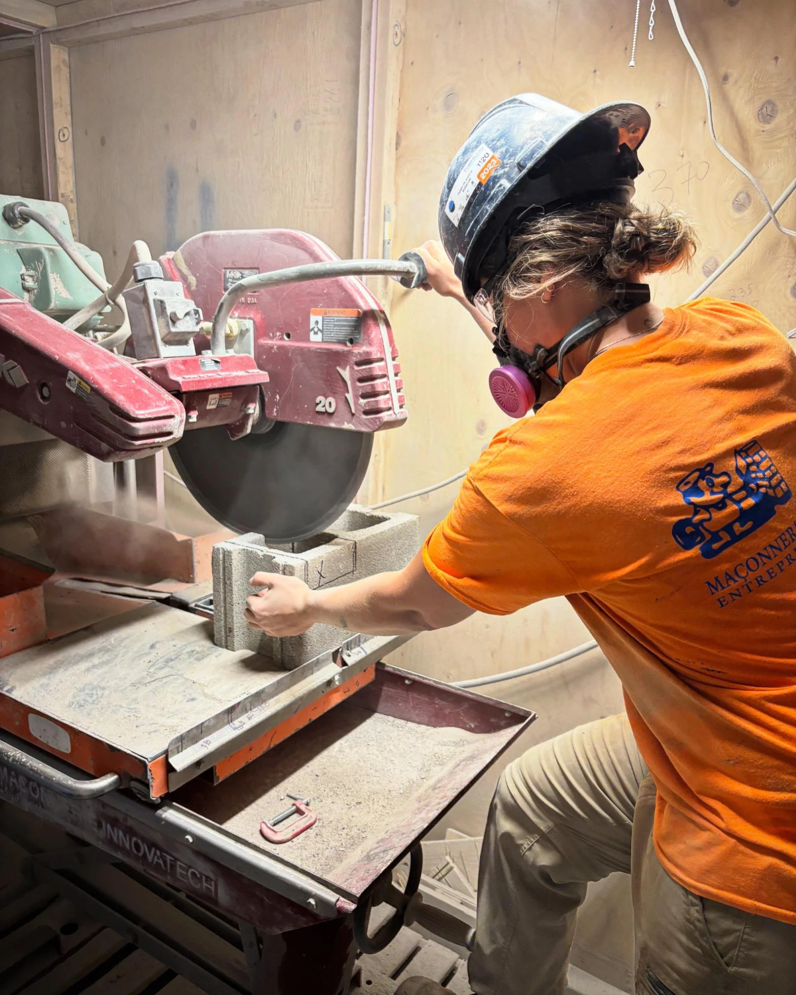 Une ostie de job. J’ai soulevé une seule chaudière et j’ai encore mal au dos en écrivant ses lignes. « C’est pas si pire, mais faire le coulis, ça c’est de la marde », mentionne Catherine, avant de jucher un gros bloc sur son épaule pour aller le tailler avec une grosse machine pour scier.