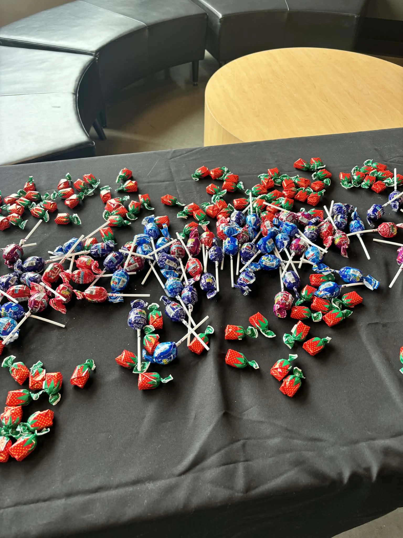 Les portes s’ouvrent, l’admission est générale. Le public, en moyenne dans la quarantaine, se précipite pour avoir des bonnes places. Sur une table à l’entrée, traînent des bonbons gratis. Je prends un suçon aux fraises, avec une gomme au milieu.