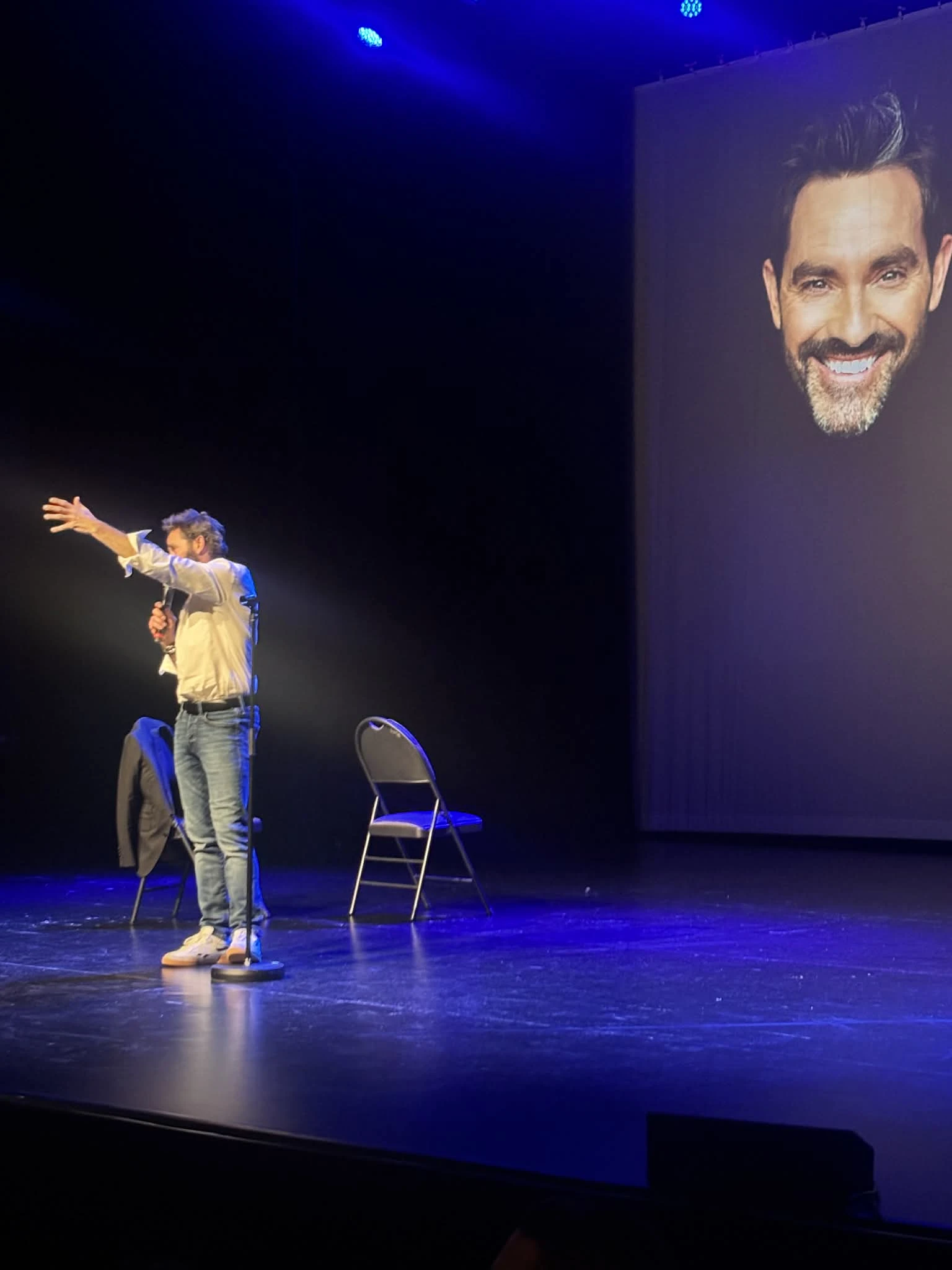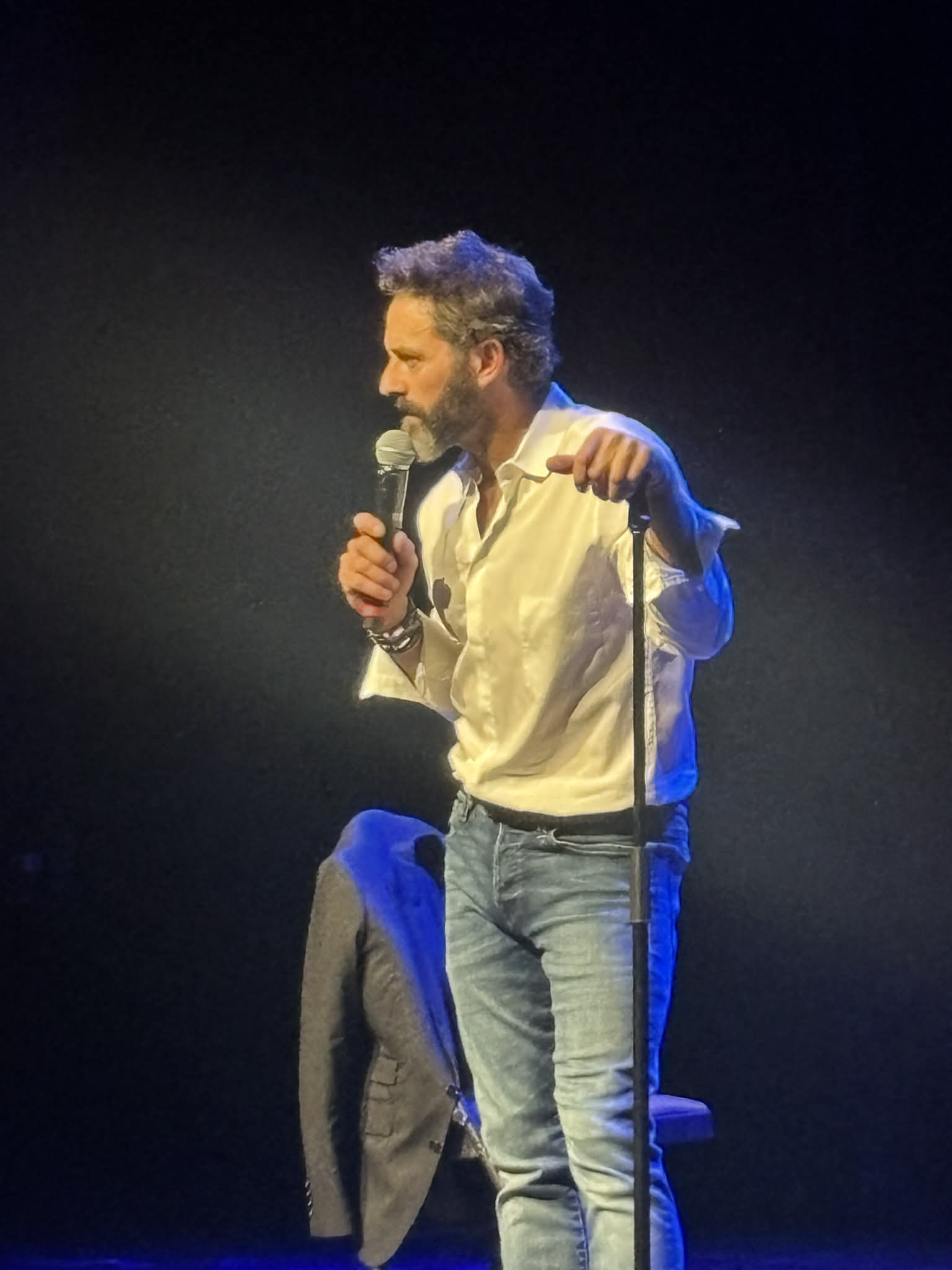 Après la pause, Michel Courtemanche improvise avec le public pendant que les gens regagnent leurs sièges. Une dame lui confie que c’est le meilleur spectacle de sa vie.
