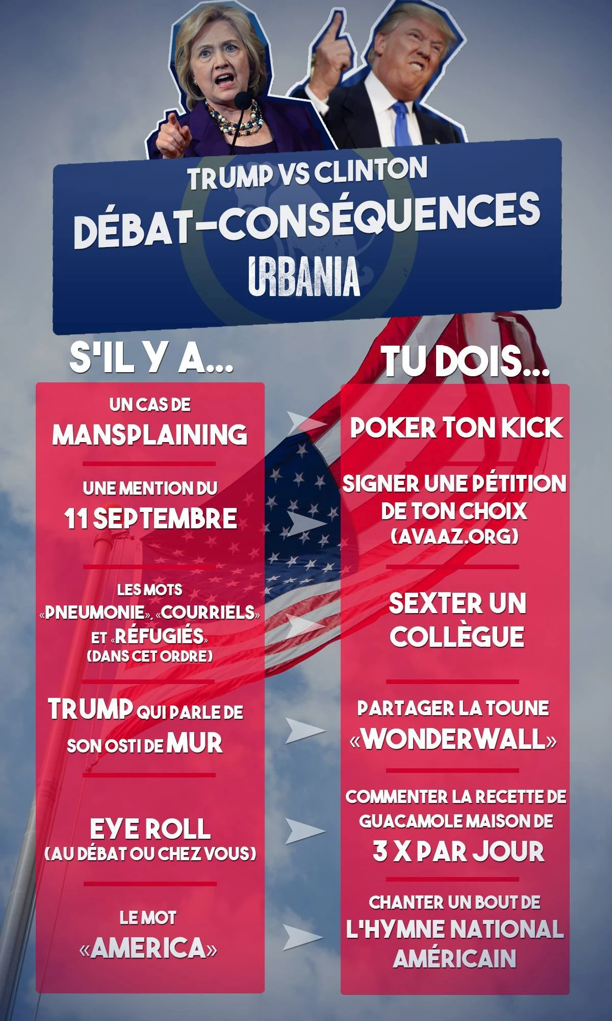 Pour une soirée réussie malgré le nombre de facepalms engendrés par les propos du Donald.
