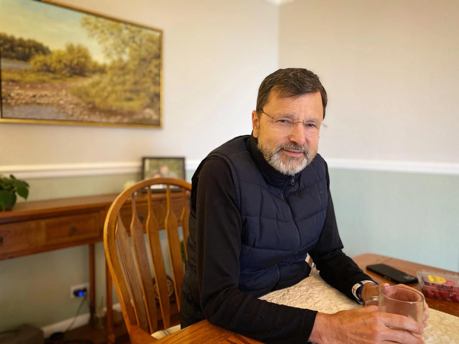 Le Robervalois de 64 ans a fière allure et un air décontracté avec son débardeur et une barbe grisonnante. On s’installe dans sa salle à manger.