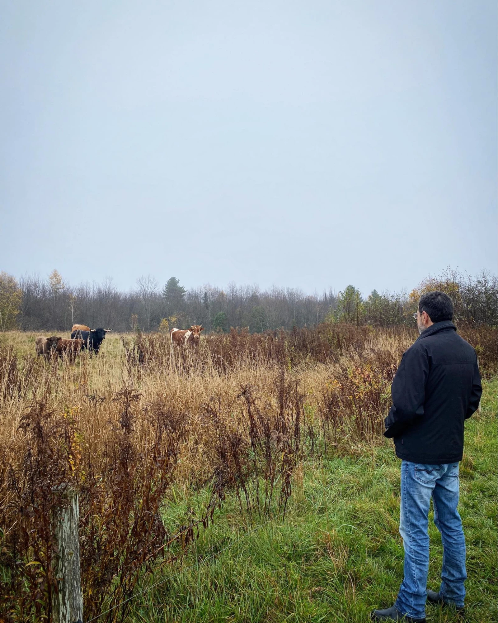 «Ah, je les vois! », lance enfin Denis, en apercevant les bêtes brouter au loin, sur le terrain du voisin d’en face. C’est ce dernier qui gère les vaches. Un win-win situation: « Nous, on voulait en acheter et lui voulait juste s’en occuper.»