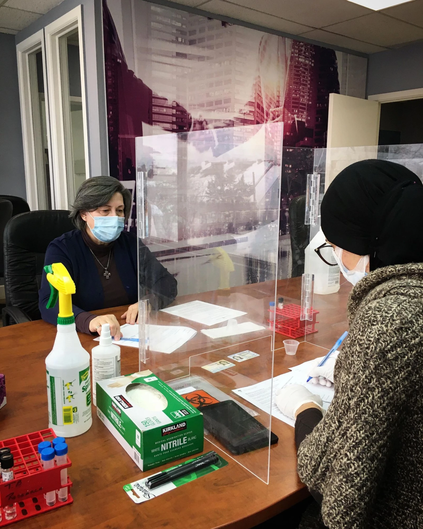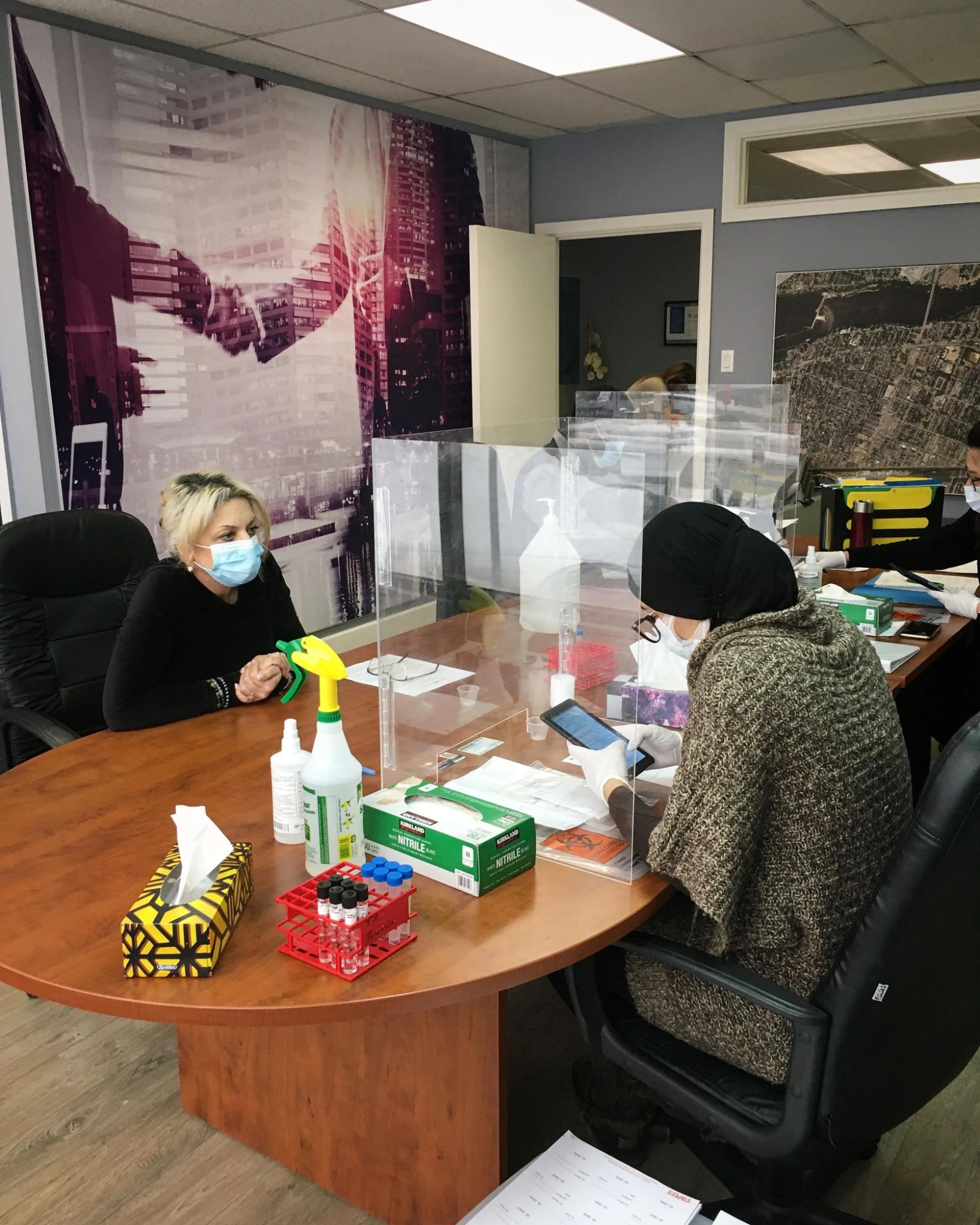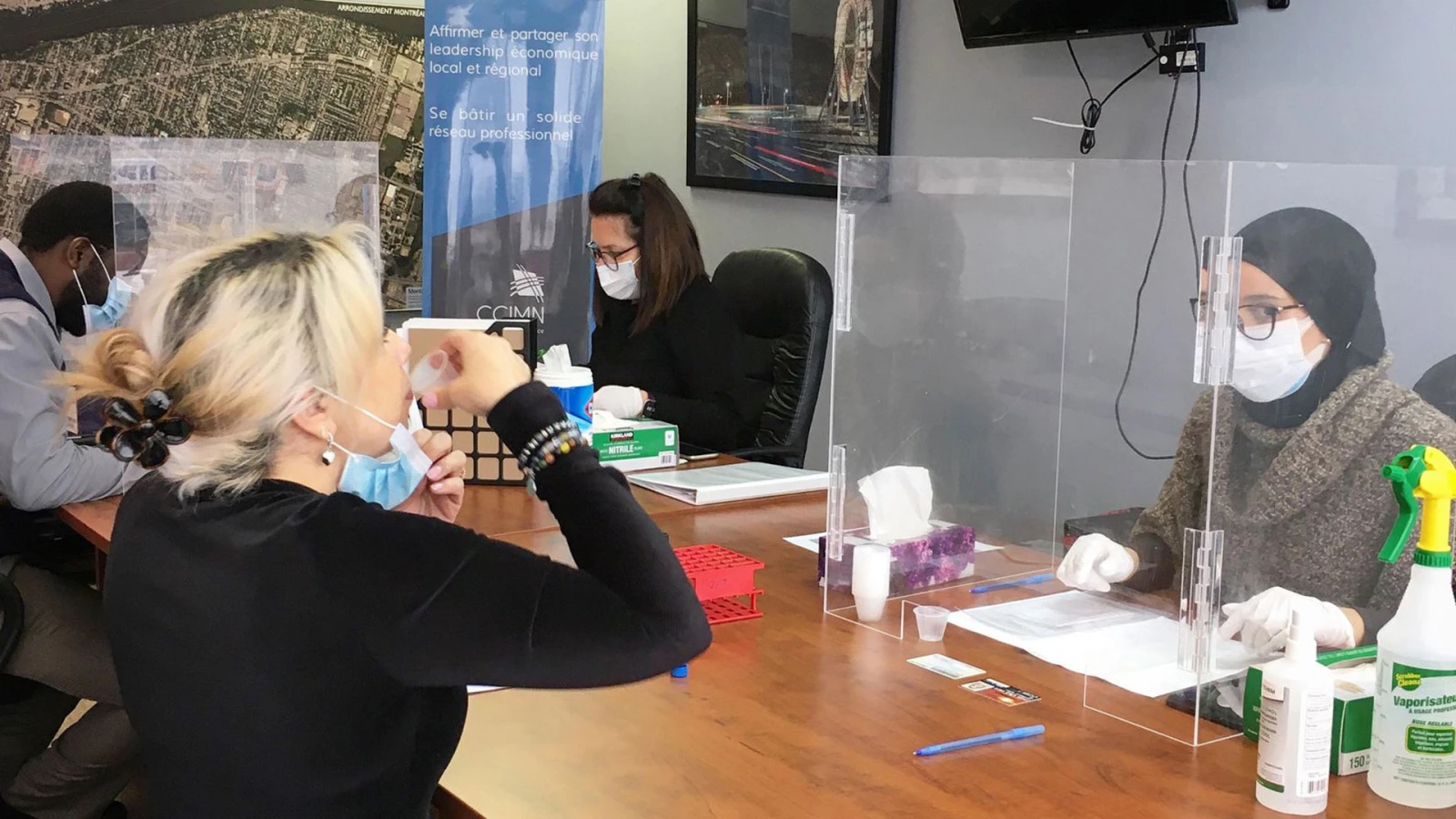 Nous sommes dans les locaux de la Chambre de commerce et d’industrie de Montréal-Nord, où l’on procède au dépistage préventif des employés de l’organisme, mais aussi ceux de la succursale de la Société de l’assurance automobile du Québec, dont les bureaux se trouvent au rez-de-chaussée.