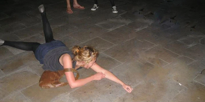 Bref, on l’a tous bu. Et c’est là que les choses ont mal viré. C’était mon premier verre. Denise, me connaissant bien, a trouvé que j’y réagissais étrangement. Lire : je marchais à quatre pattes au sol en disant que je cueillais des fleurs. Je me laissais prendre dans les bras d’étrangers qui prenaient des photos. Je déparlais. Et je n’étais pas la seule à le faire. Une autre fille de l’auberge de jeunesse – appelons-la Stacy – était dans le même état. Nos compagnons sont rapidement passé du rire au sérieux “wtf?”, avant d’appeler des taxis. J’ai attendu le mien couchée en étoile, face première, sur le bord de la rue, trop molle pour me mouvoir. Pour m’y faire entrer, quatre personnes ont dû prendre mes jambes et mes bras, puis me traîner. Ça donne de drôles de photos.