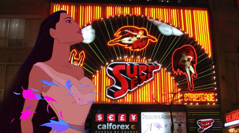(Il y en a qui disent que les films de Disney, remplis d’idéaux qu’on ne saura jamais atteindre, ruinent la vie sentimentale des jeunes filles. Notons que si c’est vrai pour celles qui grandissent en attendant leur prince charmant, c’est aussi vrai pour celles qui finissent par vouloir voir les seins du sosie de Pocahontas…)
