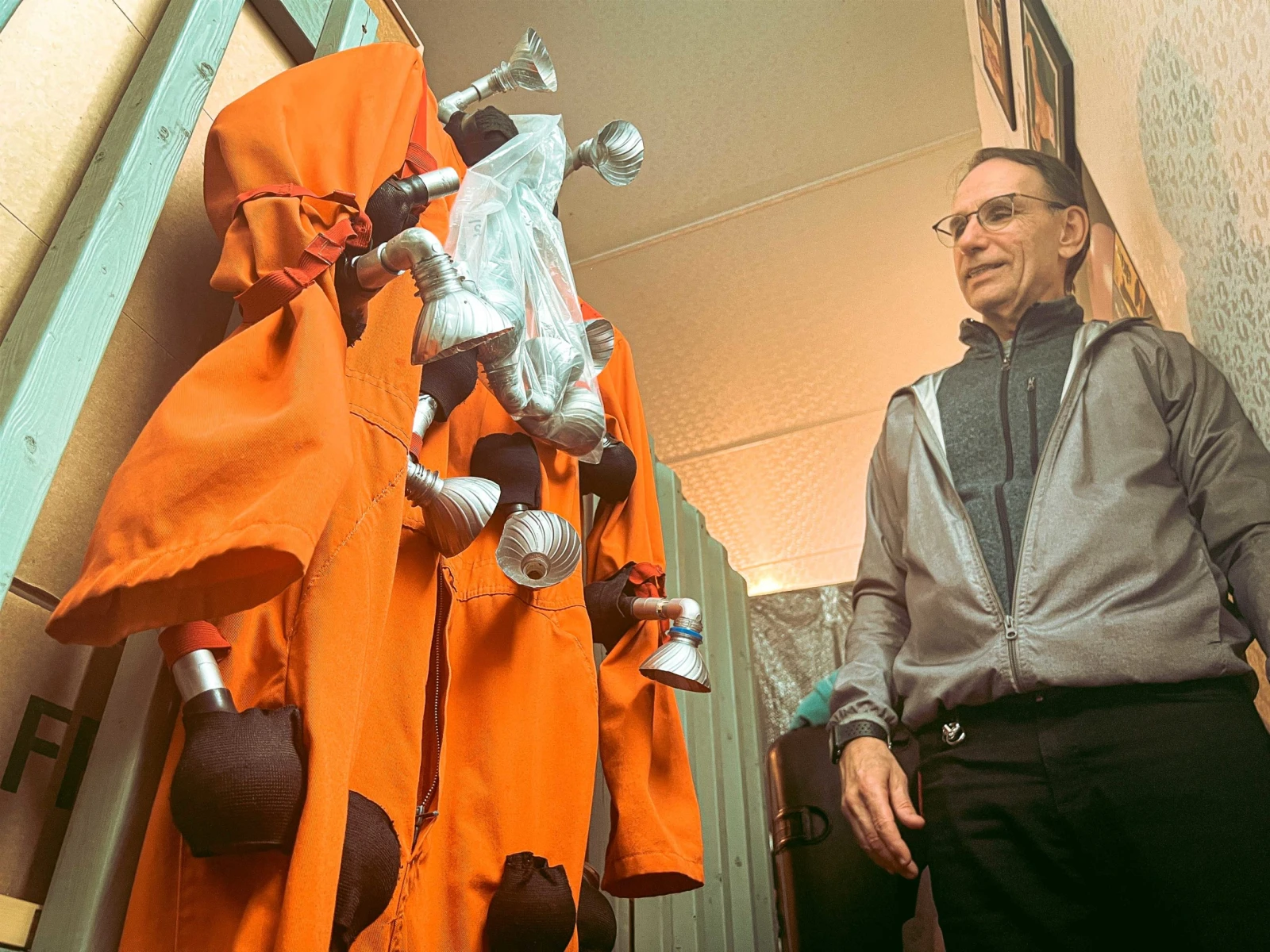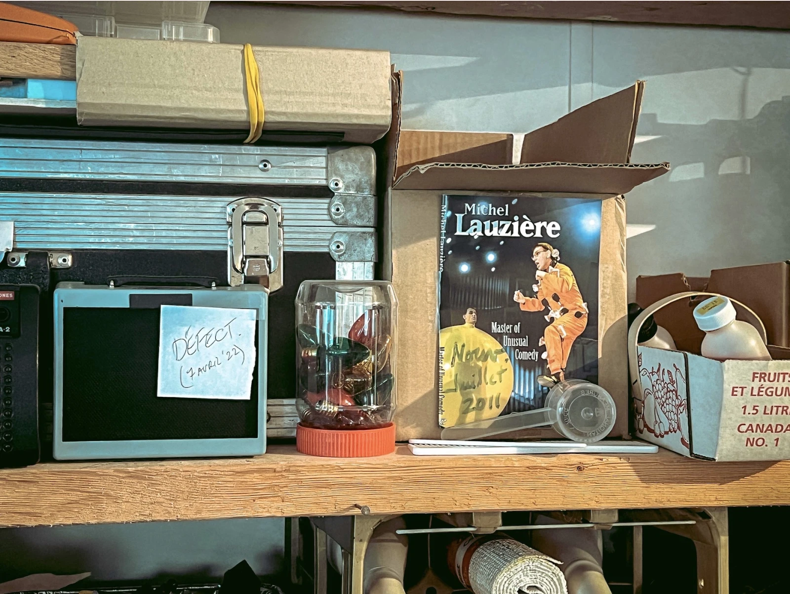 Un arbre à vaisselle, une balloune géante, un habit-klaxon, une sarbacane flexible, une pompe à bécyk ou une poire à sauce transformée en flûte de pan ont fait partie de l’arsenal patenté aussi inventif qu’inattendu ayant fait sa signature et son triomphe.
