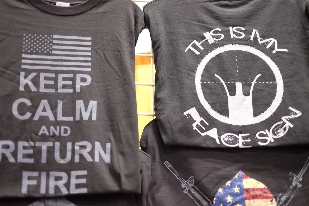 *Photo du haut : T-shirts en vente dans la convention de policiers Urban Shield la semaine dernière à Oakland aux États-Unis. Source : profil Twitter de Shane Bauer