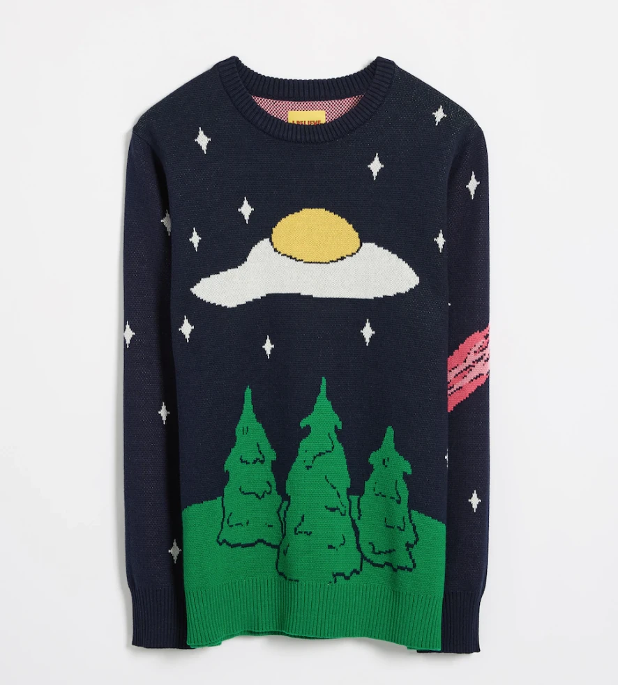 Dans les bureaux d’URBANIA, on aime beaucoup. Non seulement les chandails sont magnifiques, mais on tripe sur l’idée de se réapproprier une tendance qui se voulait un tantinet mesquine. Auparavant, plusieurs «chandails » étaient tricotés par des grands-mamans qui faisaient de leur mieux et offerts par des parents voulant bien faire.