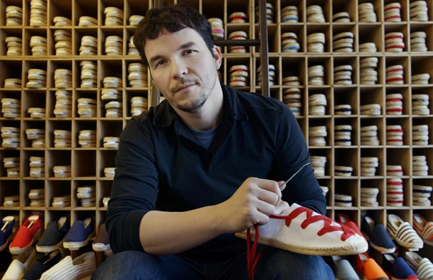 Le village d’où je les achète, Cervera del Río Alhama, possède la population la plus vieille en Espagne, et ce sont les vieux qui les fabriquent. Ils font ça comme passe-temps. Il y a un seul homme au village, qu’on appelle le soulon, qui fait les semelles en corde à la main. Il en fait 100 par année, les autres sont faites en corde et en caoutchouc.