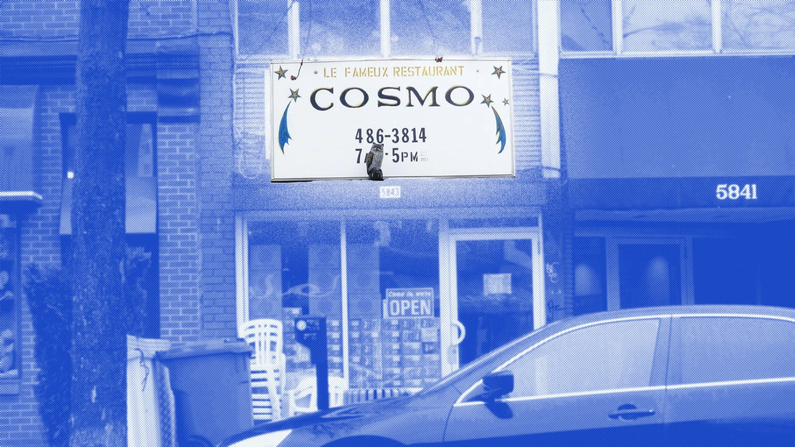 Pour les habitants du quartier Notre-Dame-de-Grâce, dans l’ouest de Montréal, le Cosmos relevait plus du rituel que de l’institution. La tradition s’est donc poursuivie avec mes amis, à l’adolescence. Réveillés en torpeur alcoolisée en début d’après-midi, on se dirigeait instinctivement vers le restaurant pour se faire soigner. On longeait Sherbrooke, jusqu’à ce que l’on aperçoive au loin la légendaire enseigne bleue et le fouillis de tables en plastique, les chaises se promenant de l’une à l’autre pour accommoder la parade de personnages venus s’y attabler.