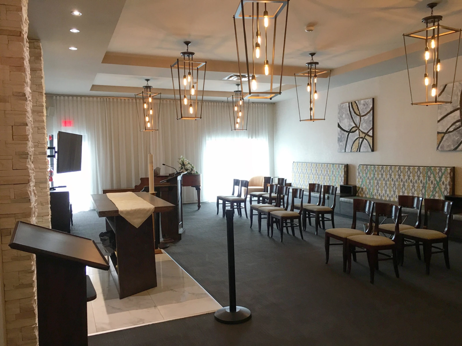 La directrice marketing et communications de la coopérative, Caroline Cloutier, m’attend à l’intérieur. C’est tranquille (bon OK, ça doit souvent l’être) à mon passage, un seul service est prévu en soirée. La succursale compte deux salles d’exposition, des bureaux, une chapelle, un columbarium et une cafétéria, à l’instar des autres installations de la coop se trouvant à Laval, Montréal-Est et Saint-Hubert. Des points de service existent aussi à Brossard et à Napierville, note Caroline, ajoutant que la coop compte à ce jour environ 20 000 membres.