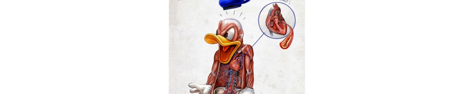 En accolant des personnages hauts en couleur, en joie de vivre et au grand sourire à des organes, des vaisseaux sanguins et même un foetus de Donald, l’artiste cherche le malaise. Quoi de plus bizarre que la rencontre de ces deux mondes? Le gore et l’univers joyeux et féerique de Disney.