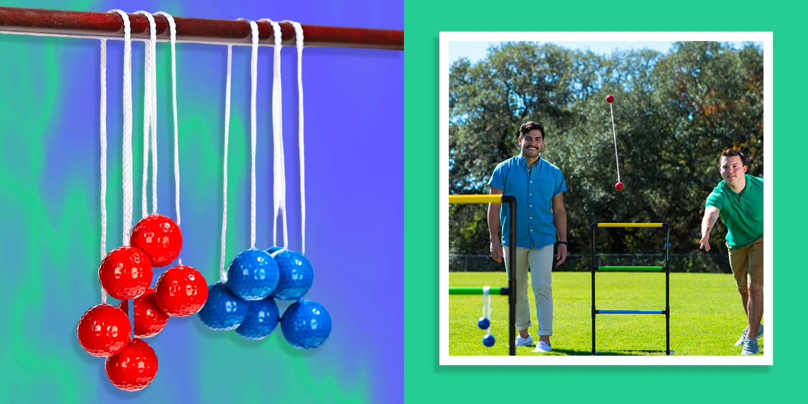 À tour de rôle, deux adversaires lancent des bolas modernes, soit deux balles de golf rattachées par une corde. L’objectif est de faire atterrir les bolas sur l’un des trois barreaux d’une échelle verticale. Si le bola atterrit sur le barreau le plus élevé, vous gagnez trois points, deux pour celui du milieu et un pour celui du bas. La première personne à obtenir 21 points l’emporte.