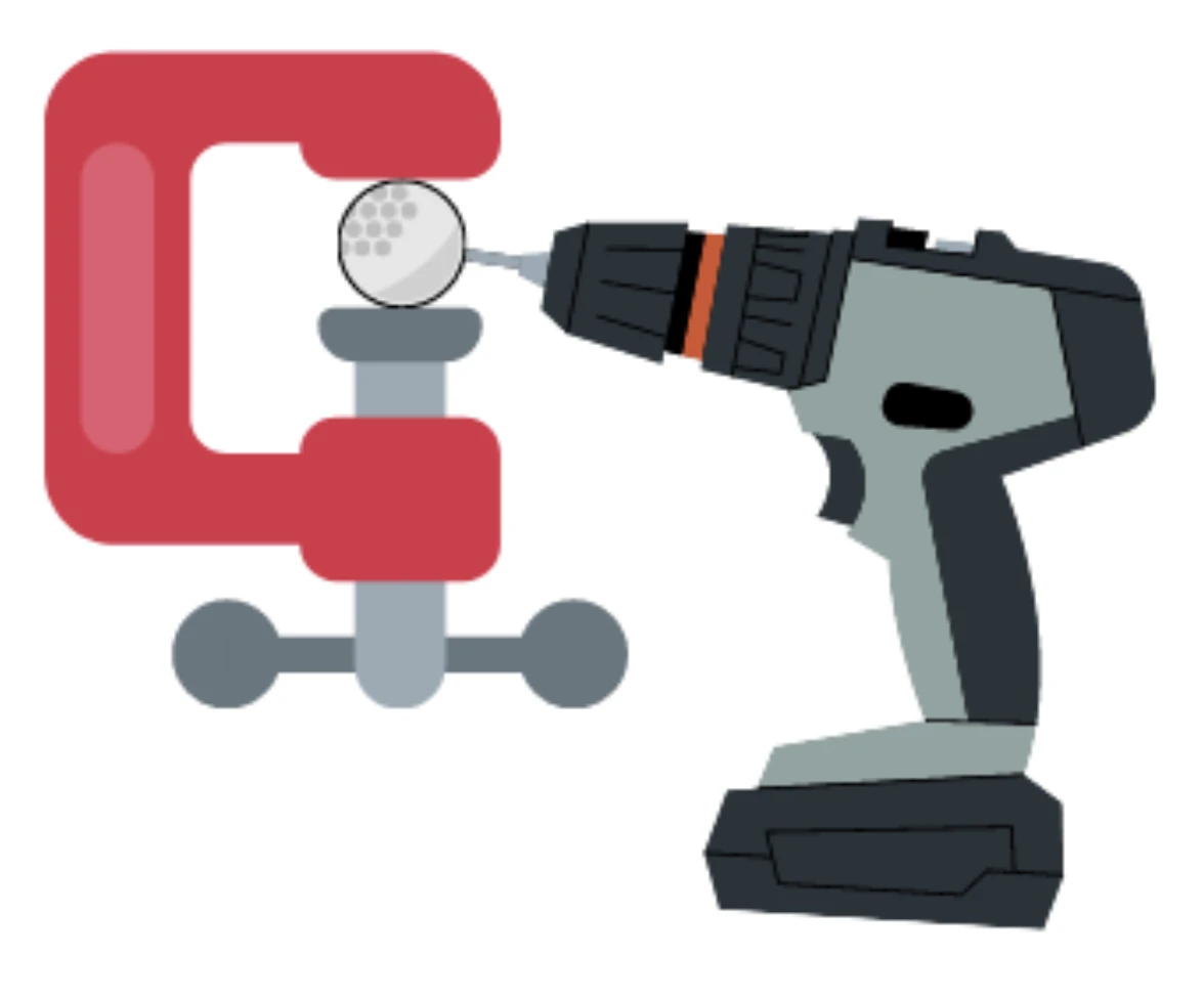 – Trouez toutes les balles de golf à l’aide d’une perceuse. Ne soyez pas téméraire, serrez-les dans un étau afin qu’elles ne bougent pas pendant que vous faites le travail.