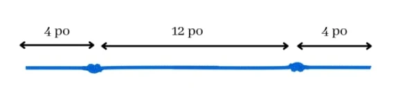 – Coupez six morceaux de corde d’au moins 20 pouces. Les bolas seront moins longs, c’est seulement pour vous donner de la latitude pour travailler. – Prenez une corde et faites deux nœuds à 12 pouces de distance. Laissez au moins 4 pouces entre les nœuds et les extrémités de la corde.