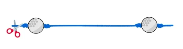 – Avec le bout de corde qui dépasse de la balle, faites un autre nœud pour que la balle soit bien serrée entre les deux nœuds.