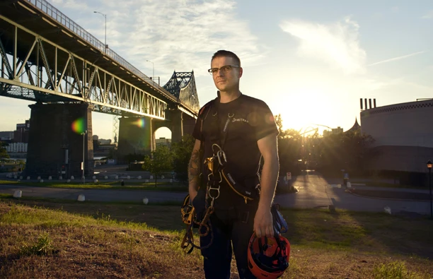 J’ai inspecté tous les ponts majeurs du Québec, sauf le pont Laviolette, et je suis monté sur l’antenne de la tour IBM, à 230 mètres, pas mal mon contrat le plus haut.