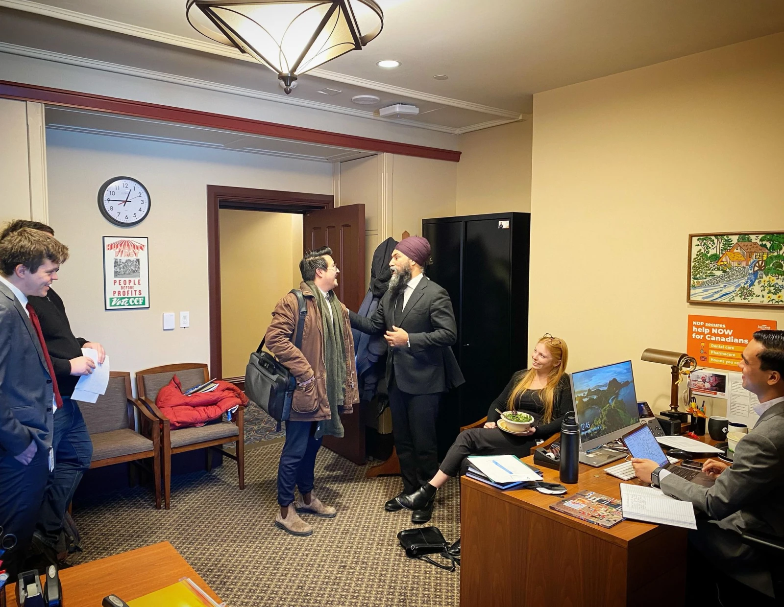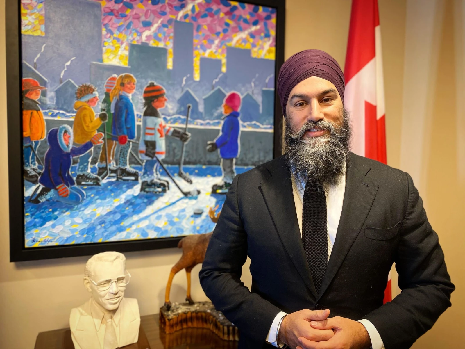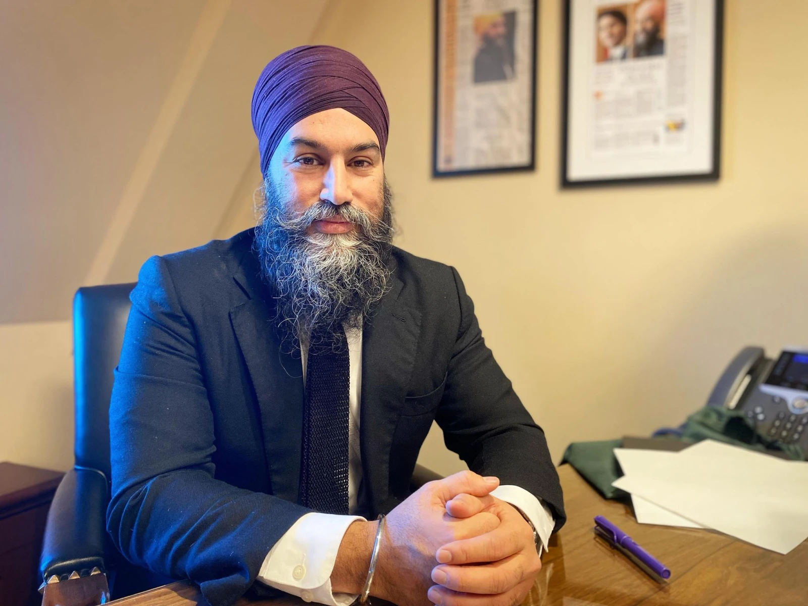 « Il y a beaucoup de pression sur mes épaules, mais je suis fier de dire qu’après cinq ans, cette année est celle où j’ai accompli le plus », analyse d’emblée Jagmeet, en prenant place derrière son bureau près d’une fenêtre par laquelle on voit l’unifolié flotter au vent au-dessus du Parlement en rénovation.