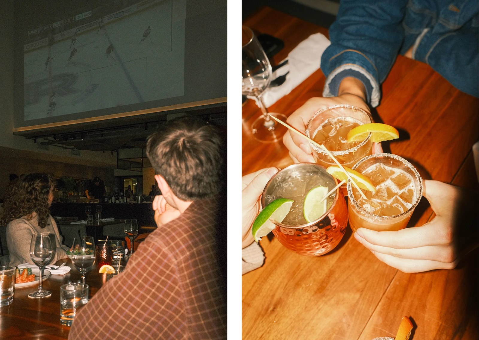 Dans l’ambiance décontractée du restaurant, un écran projette un match de la Victoire de Montréal. Allez, les filles!