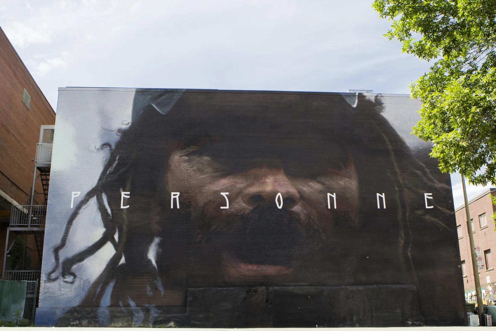 La murale d’Axel Void a reçu une grosse couverture médiatique. Il s’est beaucoup promené dans le quartier, pour sentir la vibe, et il s’en est inspiré pour son œuvre. Il a peint le visage de cet itinérant du boulevard Saint-Laurent, Adrien, qui venait de perdre son camarade, Herman, lui aussi itinérant. Il a fait sa murale derrière un immeuble qui accueille des itinérants. C’est une œuvre qui s’inscrit dans sa série “Nobody”. L’idée, c’est de mettre des gens qu’on oublie en avant à travers ses œuvres.