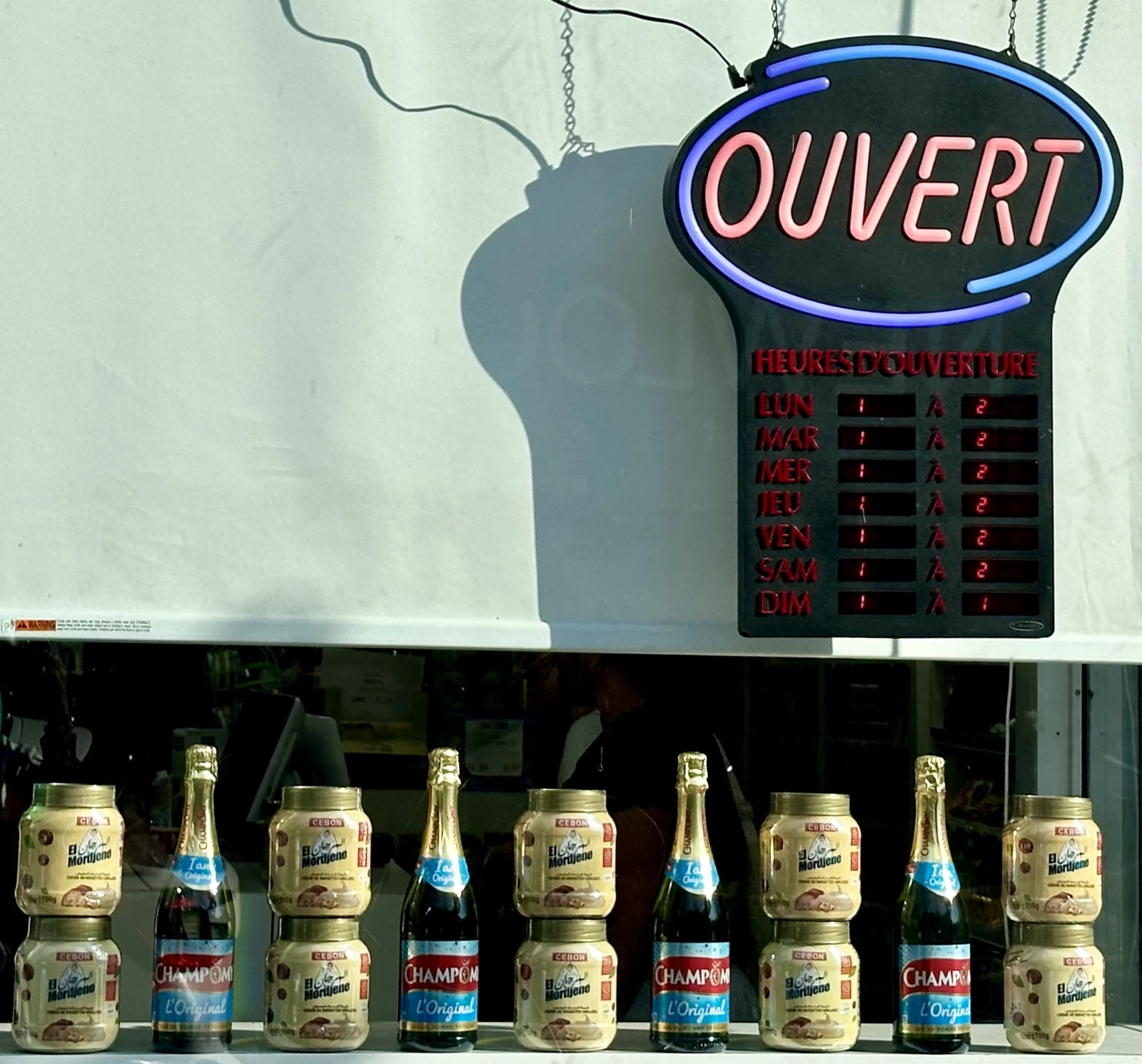 Pour booster ses ventes, il met également un soin tout particulier dans sa vitrine, intercalant des pots de El Mordjene avec des bouteilles de Champomy, car « ça donne un petit effet luxueux ».