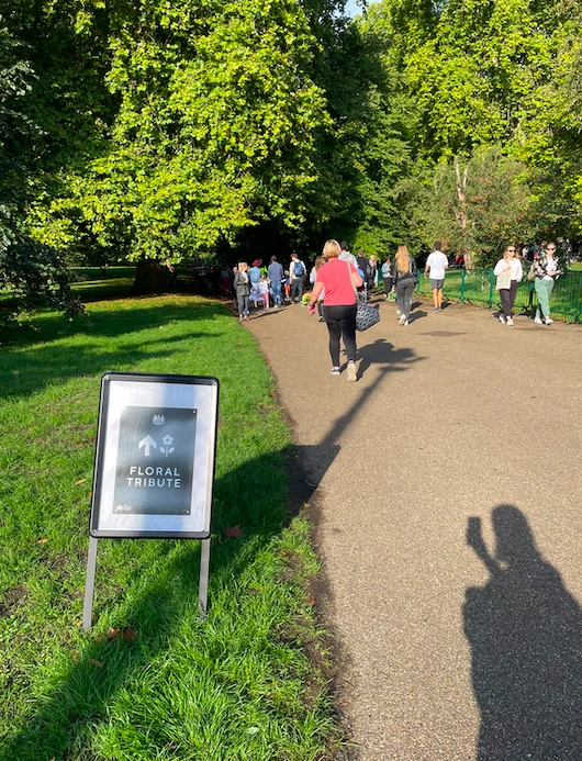 Par chance, je ne suis pas complètement stupide : je savais bien qu’on était à seulement quelques minutes à pied du palais de Buckingham, où les citoyen.ne.s britanniques étaient invité.e.s à rendre un hommage à la reine Élisabeth II, dont le décès la veille au soir a créé une véritable commotion médiatique et sociétale.