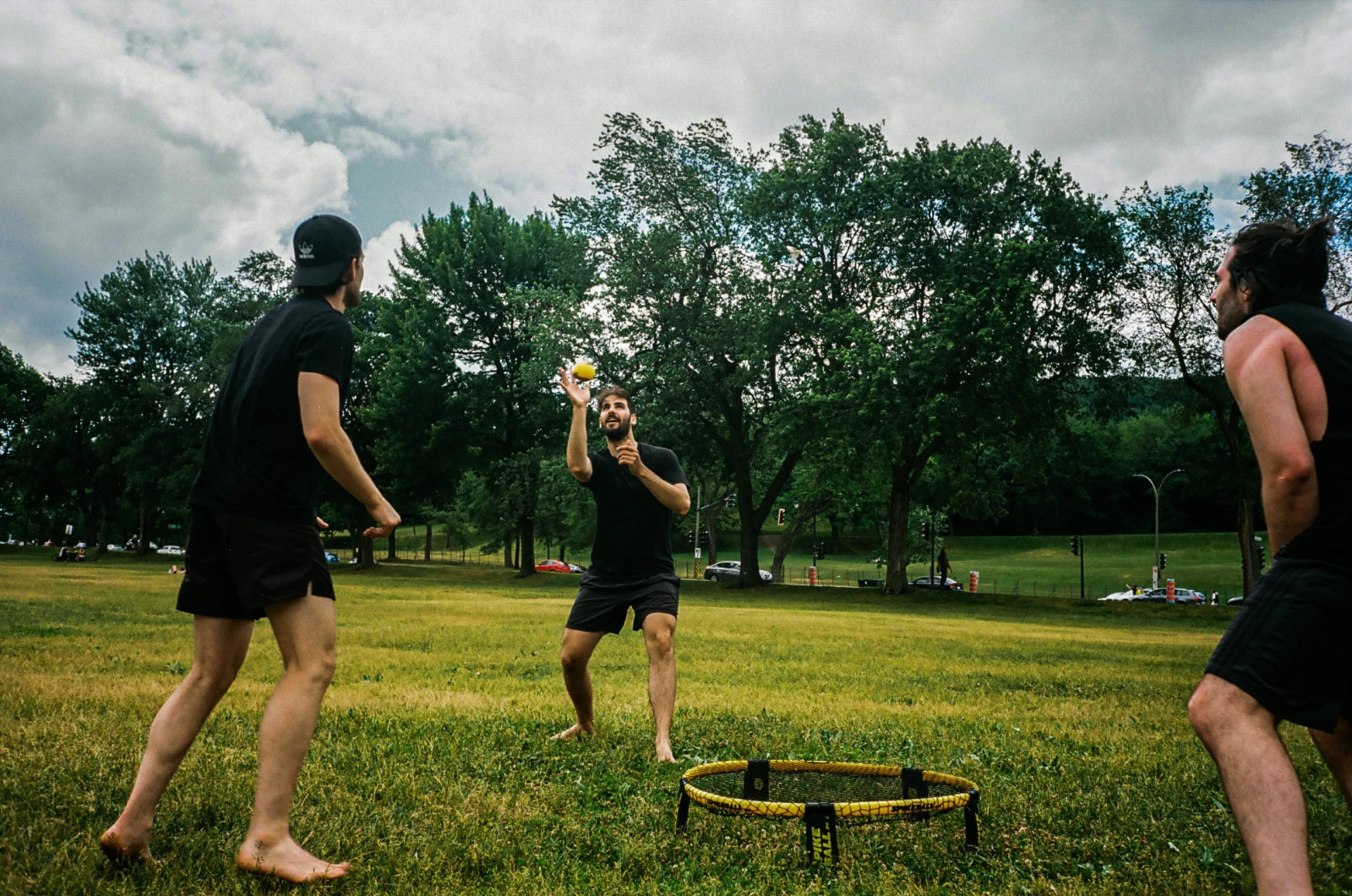 Ces derniers temps, les tables de ping-pong connaissent des files dignes du Dollorama, on entend au loin le claquement du mölkky et la nonchalance des akis. Ça attrape des frisbees, tombe des slacklines, s’initie au badminton, frappe le cochonnet, ça fait du yoga en groupe géant qui donne des airs de prière du vendredi. Bref, le parc d’aujourd’hui est devenu plus que jamais une récréathèque bouillonnante et le domicile à aire ouverte d’une ville assoiffée de divertissement estival. Or, à travers toute cette sueur ludique, s’il y a bien une activité qui s’est invitée avec insolence dans ce nouveau paysage montréalais, c’est sans aucun doute l’infâme Spikeball, le champignon des gazons plats.