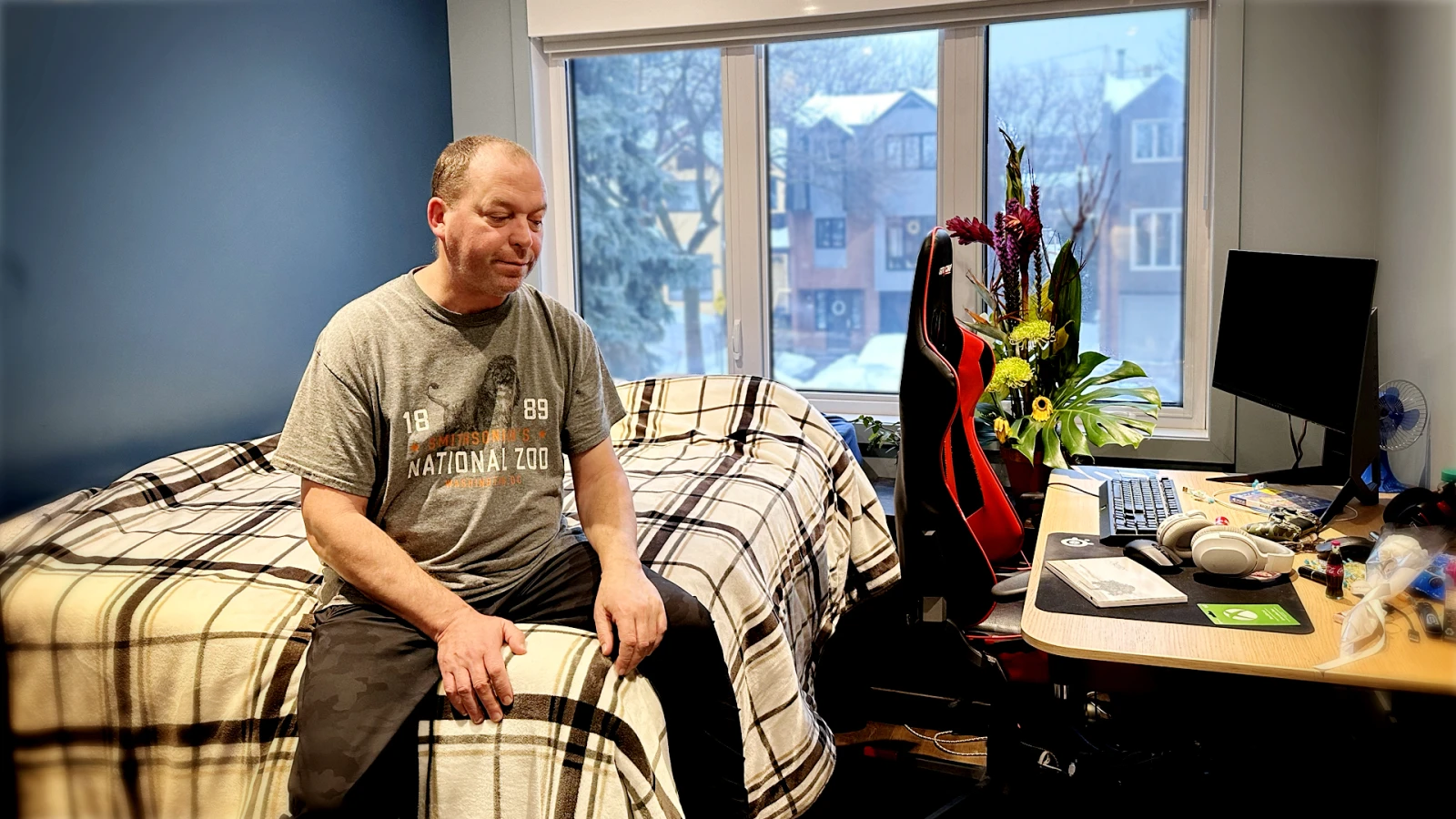 Avant de partir, Christian offre de nous montrer la chambre de son fils. Ma collègue Anne-Marguerite et moi échangeons un regard, l’air de nous demander s’il y a une ligne à ne pas franchir. Mais le père nous rassure aussitôt. La chambre à Mathis ne sera pas un tombeau, au contraire. Lui et sa blonde ont encore dormi dans son lit, ce matin. Tous les amis de Mathis y sont les bienvenus. Olivier jouait sur son ordinateur pas plus tard qu’hier. Il utilise même son compte Fornite, paraît que ses skins sont malades. Christian vient même d’acheter une lampe pour la commode.