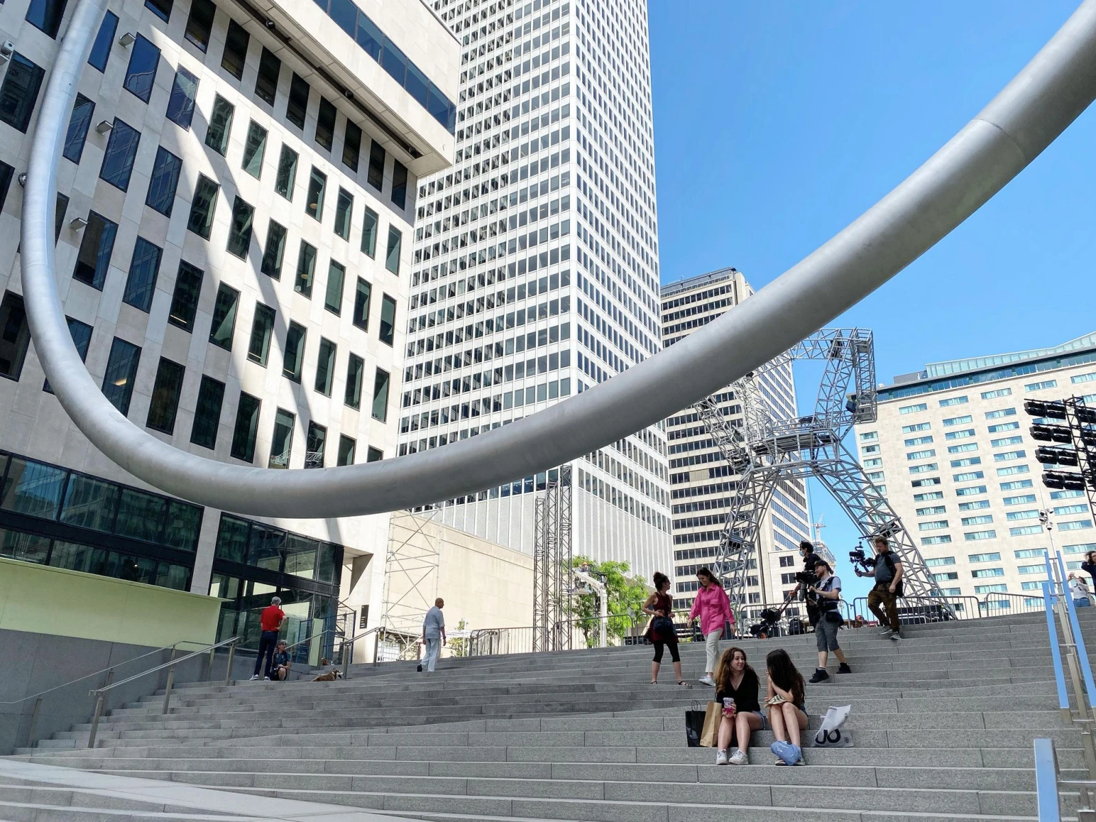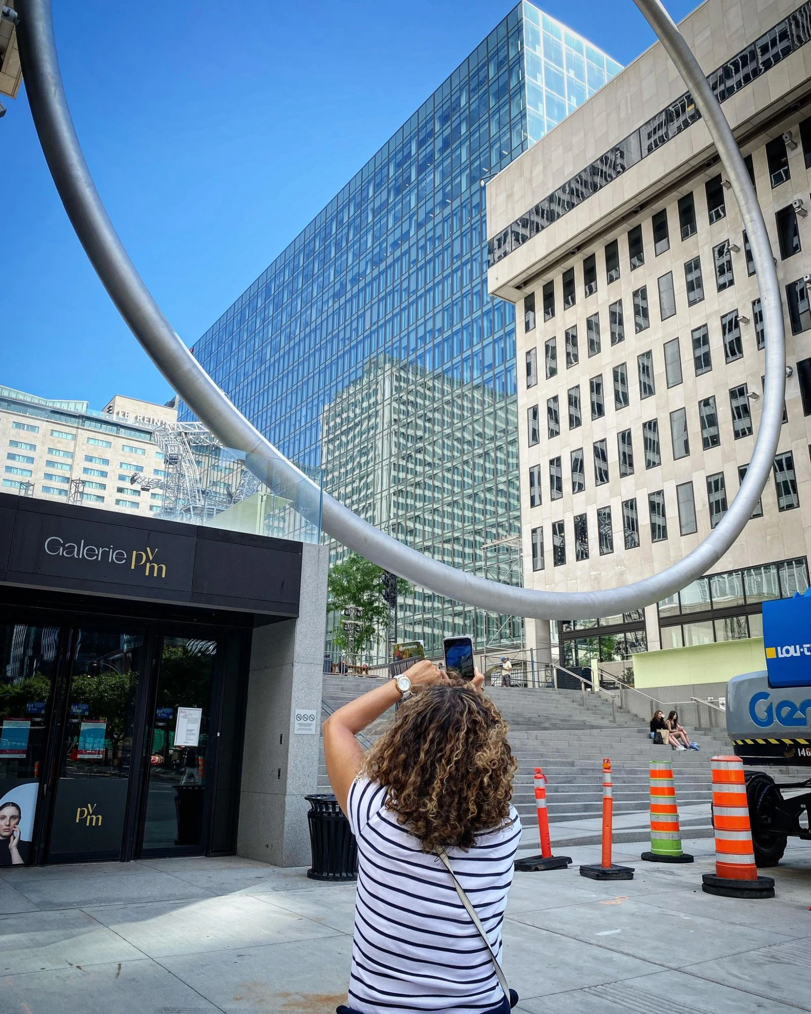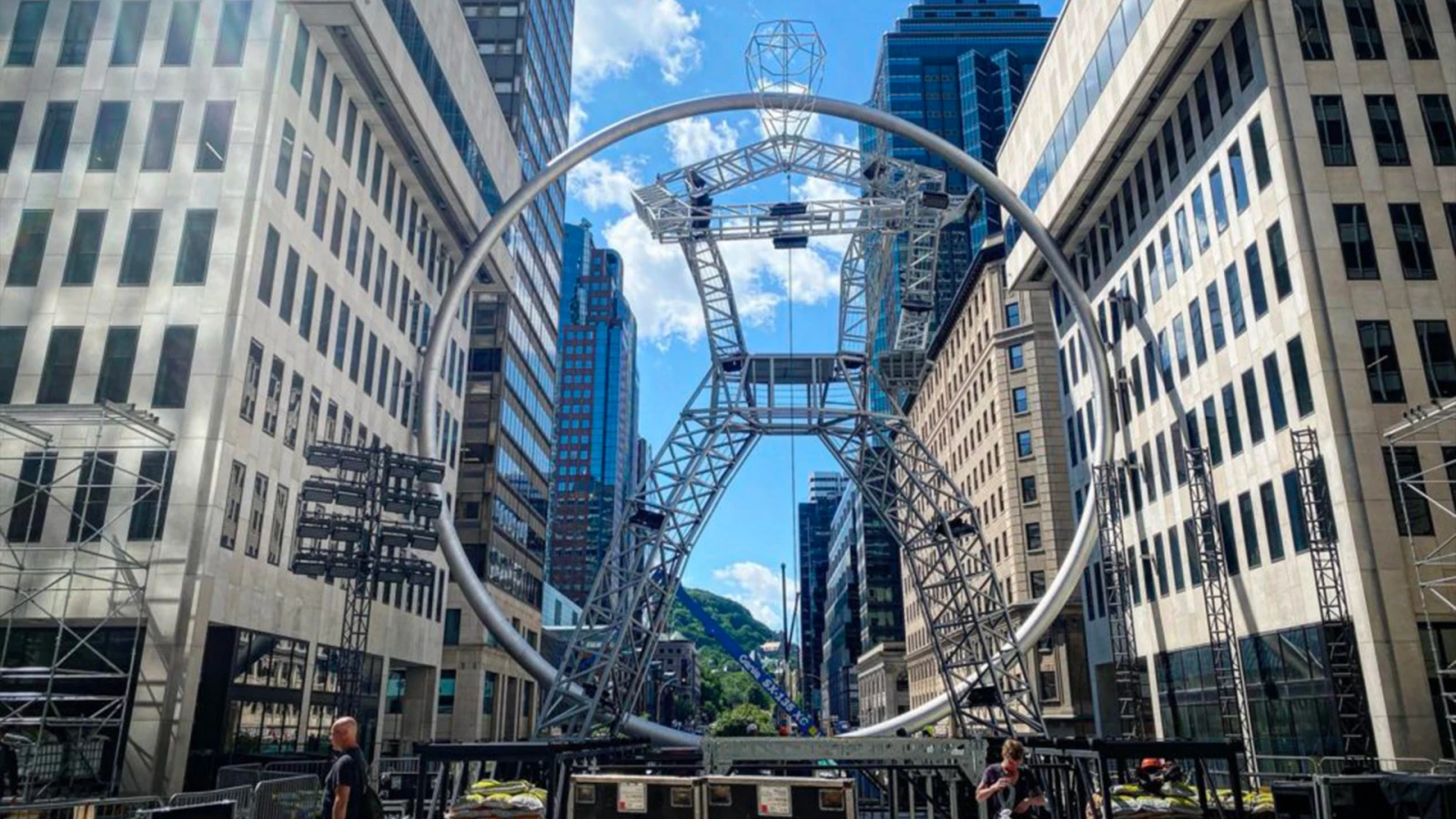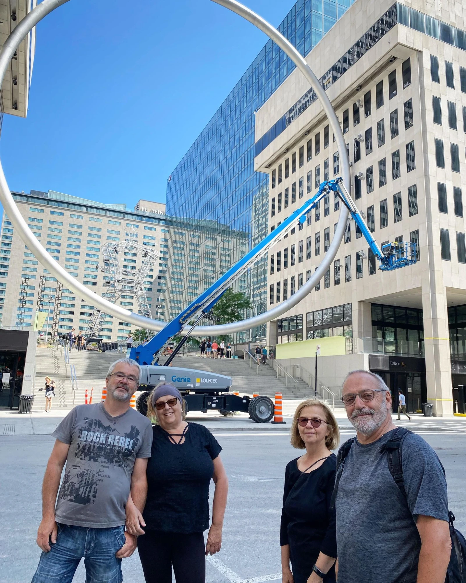 Au bout du fil, ma boss Barbara m’apprend l’une des caractéristiques de l’anneau géant d’environ 30 mètres de diamètre installé sur l’esplanade de la Place Ville-Marie, au cœur de la métropole.