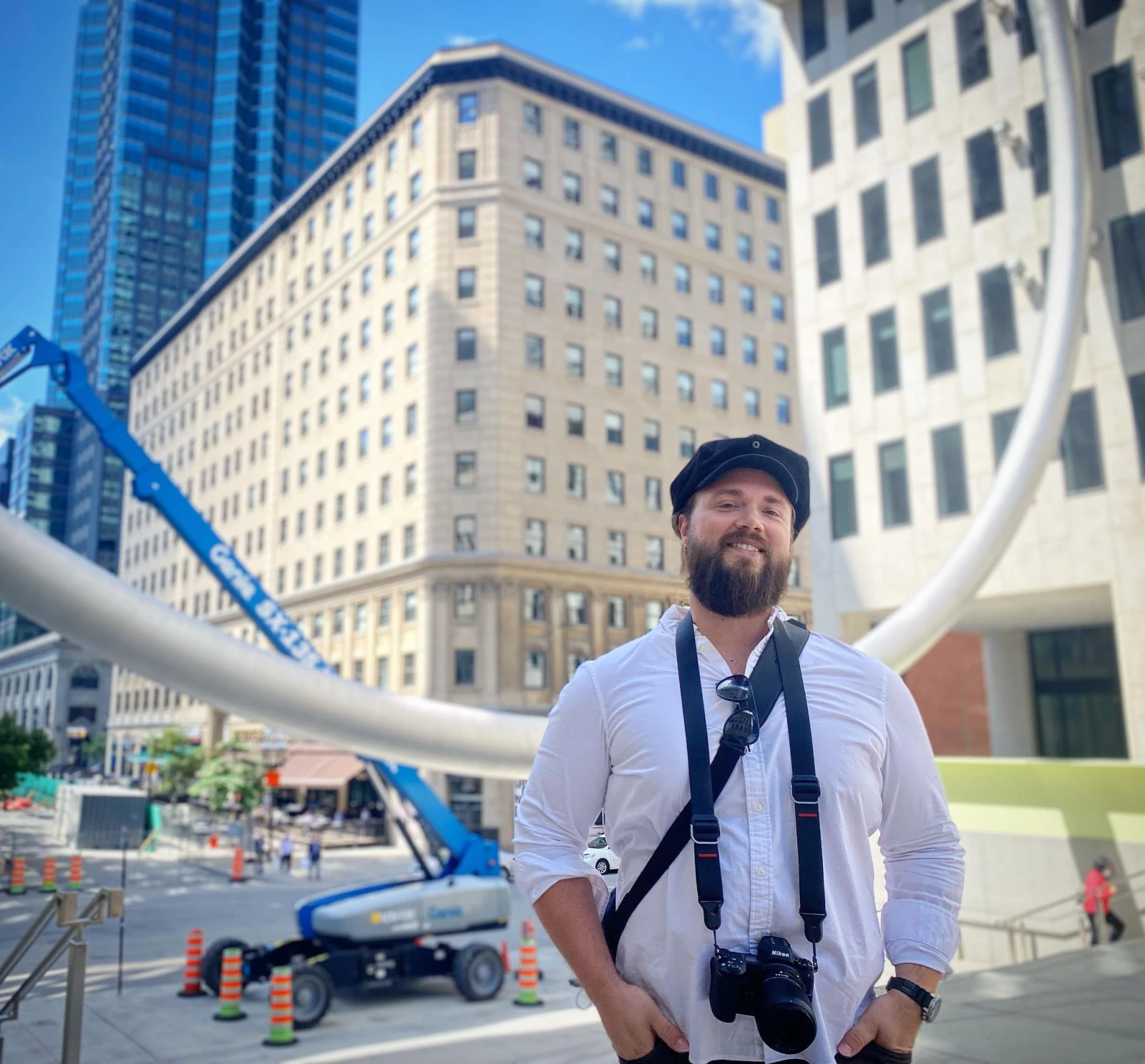 En haut de l’escalier, un jeune homme mitraille l’anneau de tous les angles avec un bon appareil photo (pas son cell) accroché au cou. Fraîchement installé à Montréal, cet Ontarien découvre sa ville d’adoption à travers la street photography. « Avec des choses simples comme les murales, les ruelles, la personnalité des quartiers, je me sens choyé comme citoyen. C’est tellement un gros contraste avec la petite ville d’où je viens ou même Ottawa, où pratiquement aucun argent ne va à l’art urbain », explique Joël Louiseize, qui documente ses coups de cœur sur sa page Instagram.