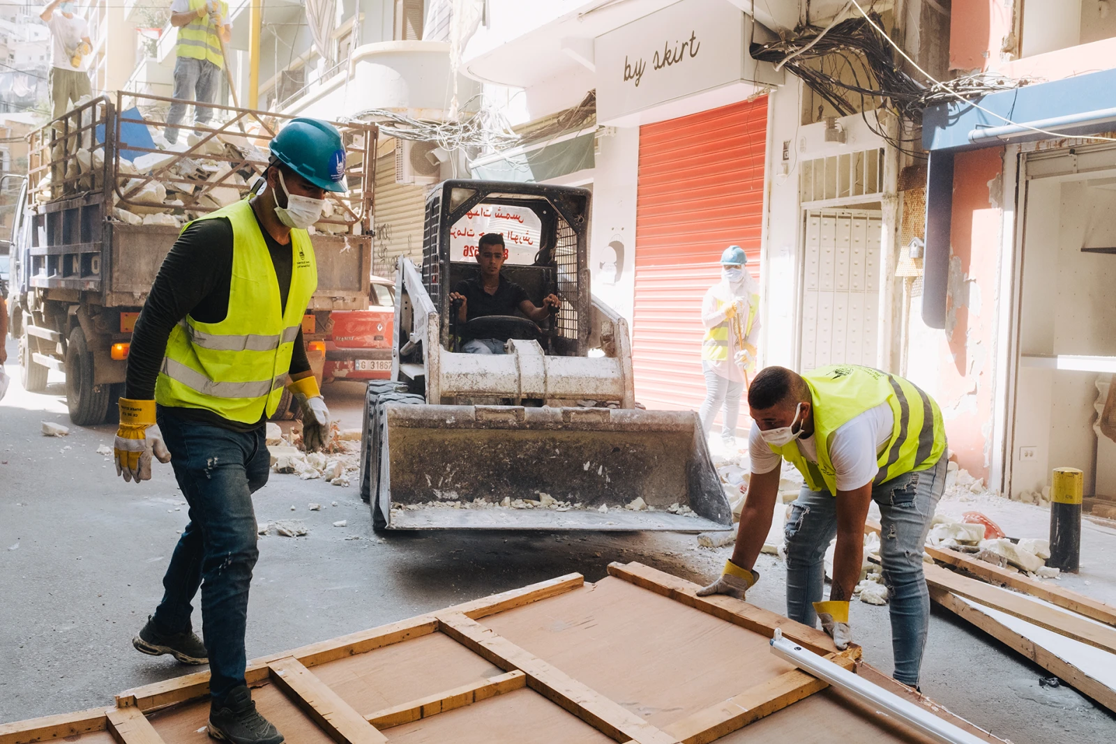Plusieurs organismes à but non lucratif comme Offrejoie réinvestissent leurs dons dans la reconstruction des maisons grâce à l’achat de matériaux et l’embauche de main-d’oeuvre. Une armée de charpentiers-menuisiers travaille de longues journées pour reconstruire les maisons de Beyrouth.