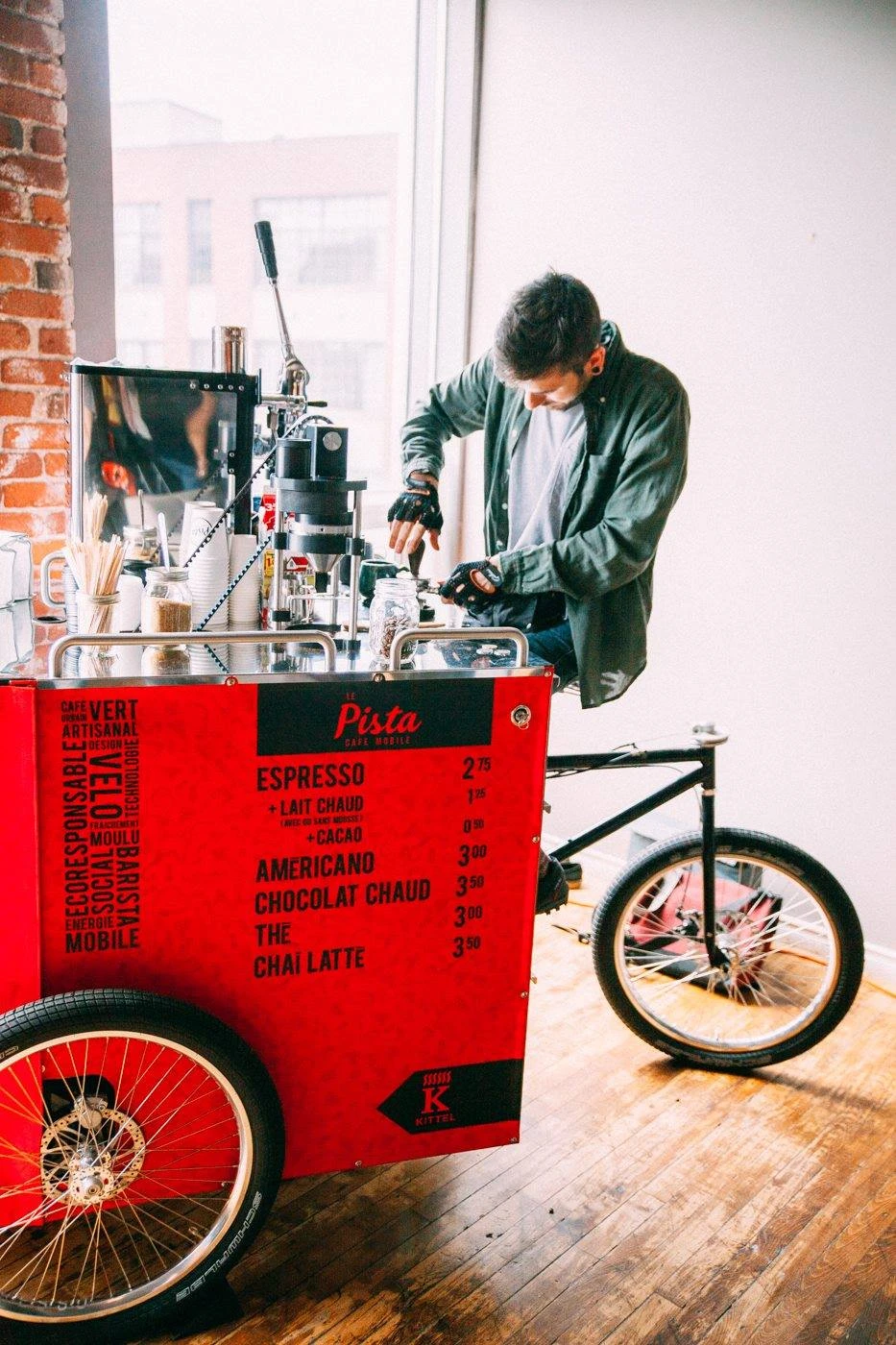 Maxime sur son café mobile.