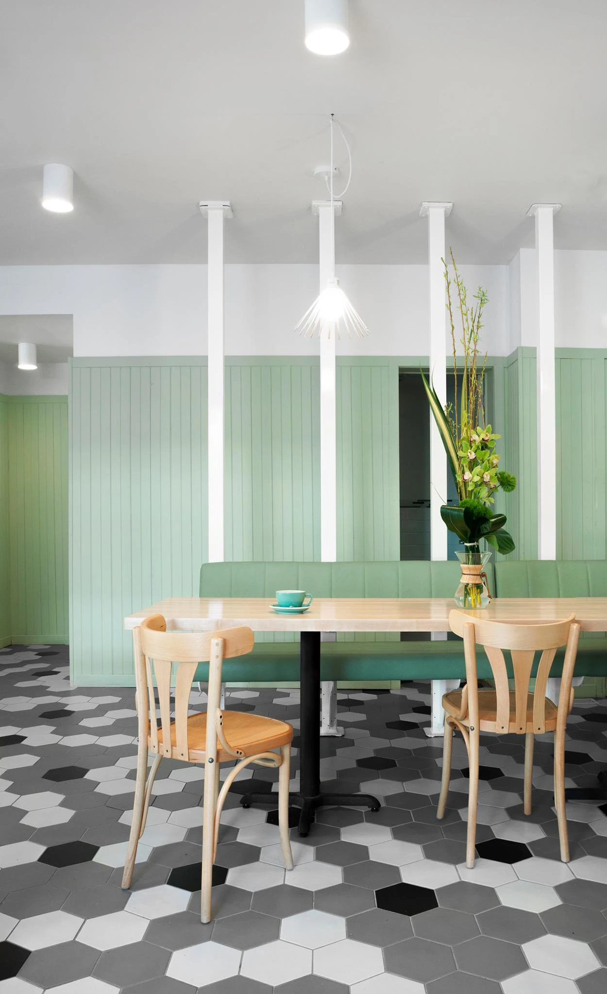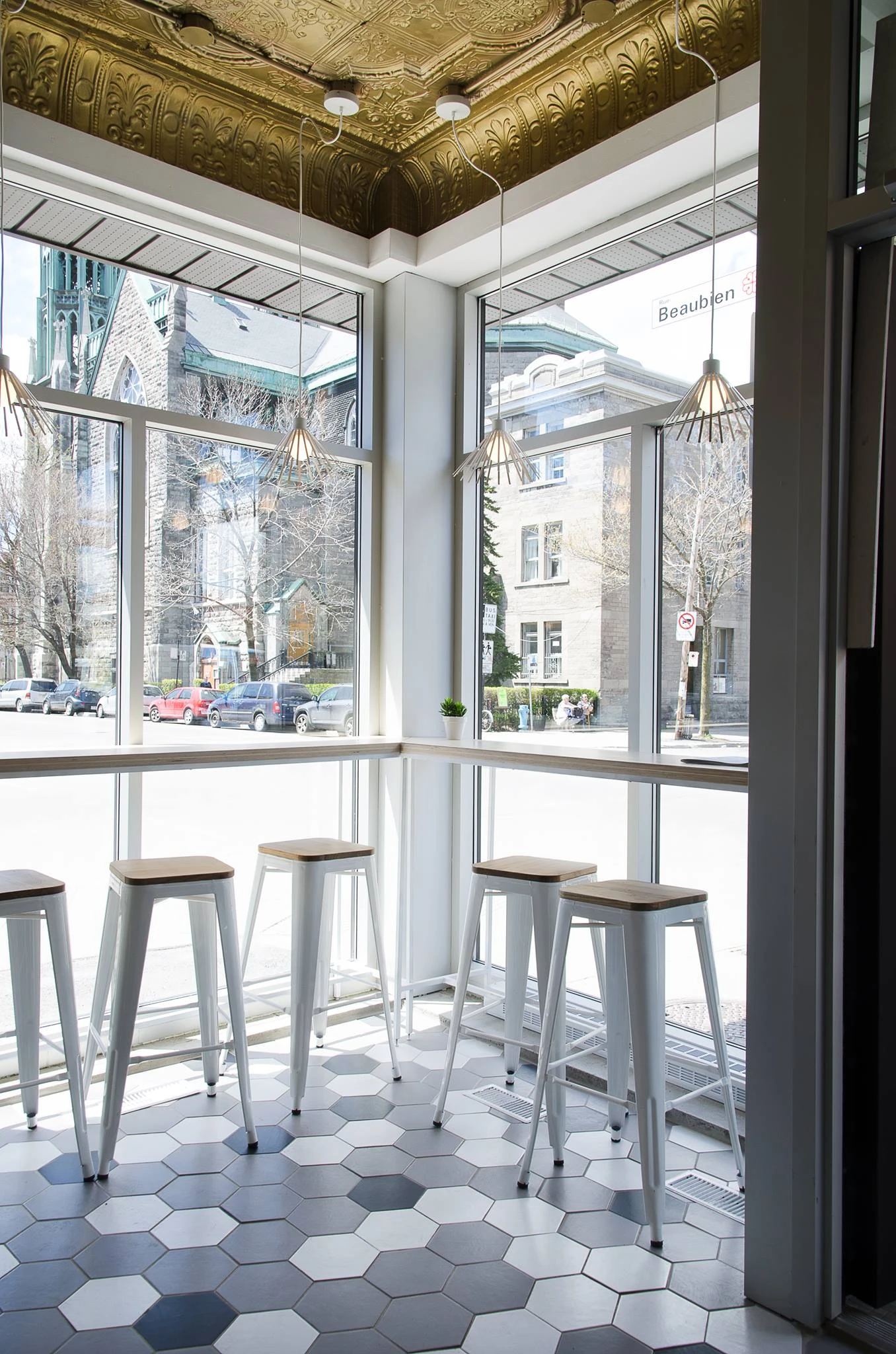 Le Pista baigne constamment dans la lumière, le soleil étant son meilleur complice. Carrelage alvéolé, plafond doré, comptoir immaculé, sommes-nous dans une ruche? On aime l’esthétique recherchée, le pastel tiré tout droit d’un Wes Anderson, les longues tables qui incitent aux partages, les banquettes qui rappellent les «diners» et les tabourets pour les plus pressés.