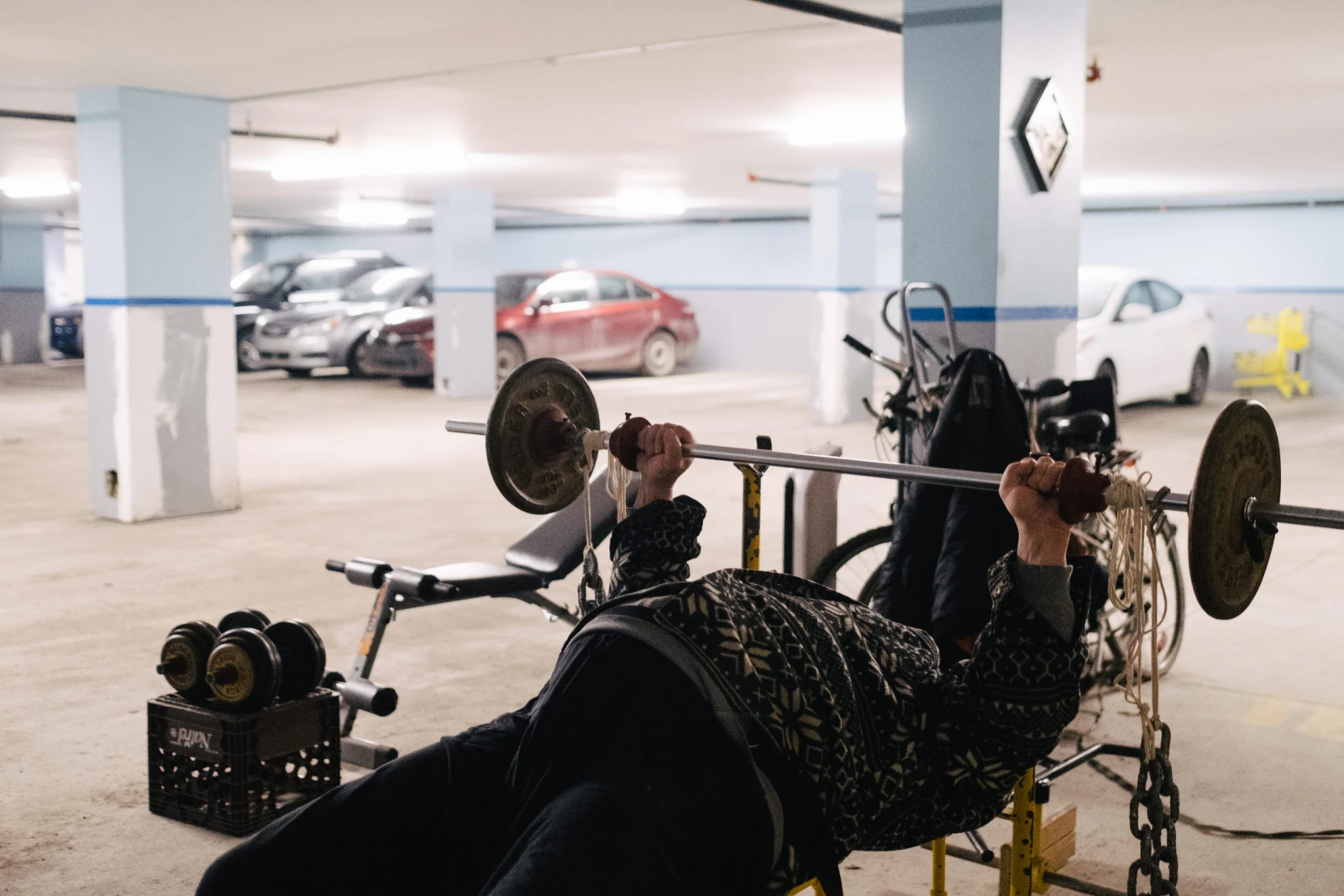 Jean pratique la musculation depuis longtemps. C’est la façon qu’il a trouvée, à l’adolescence, pour fuir l’intimidation dont il était victime. Aveugle depuis trois ans à peine, il trouve chaque sortie pénible et encore plus en hiver. Pour se faciliter la vie, il s’est installé un coin gym dans le garage de l’immeuble où il habite.