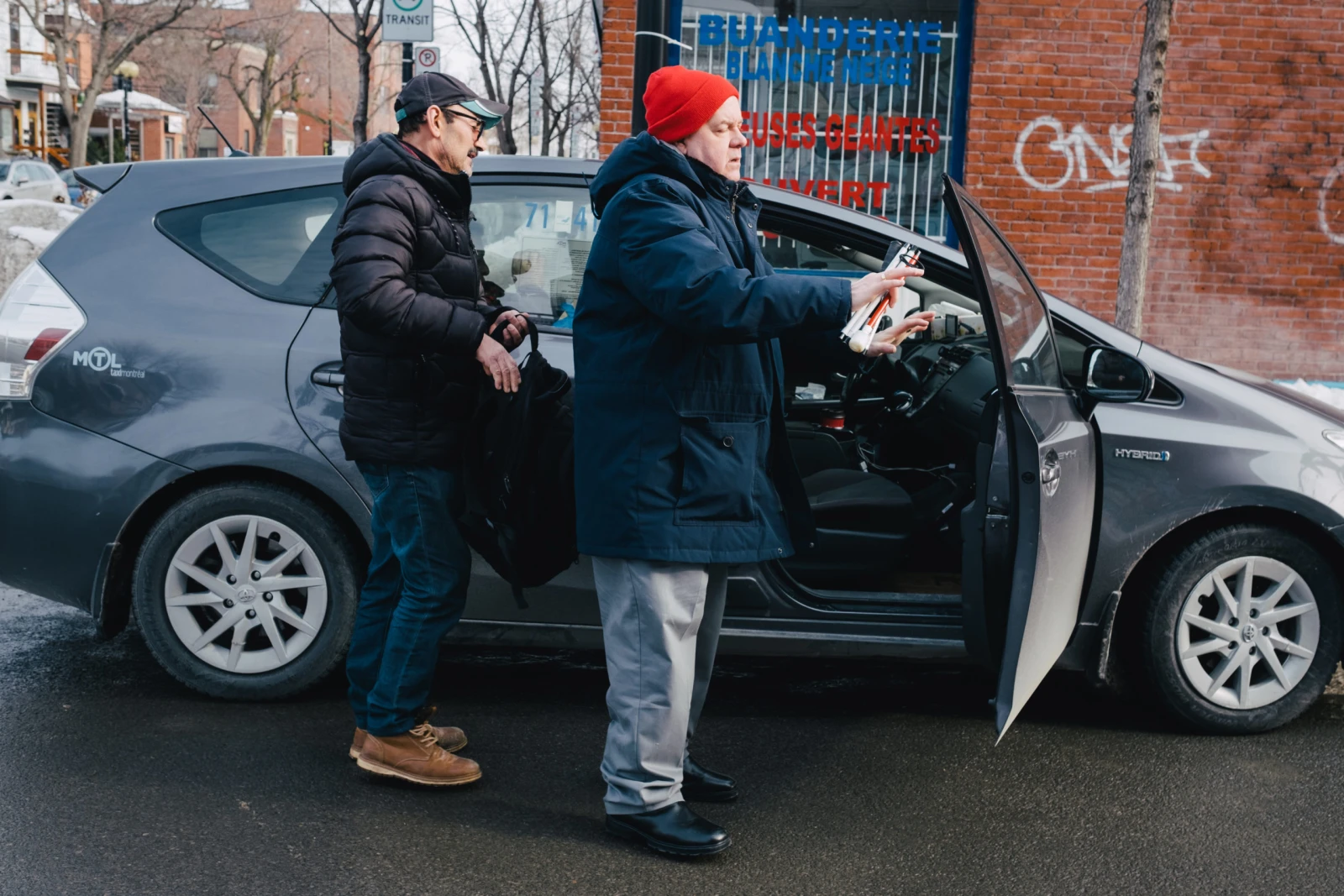 Ce ne sont pas les caprices de Dame Nature qui vont arrêter l’énergique Serge. Avec un horaire chargé de conférencier et d’animateur radio, il n’hésite pas à se déplacer en transport adapté pour remplir ses nombreuses obligations. On peut le voir ici retourner à la maison après s’être offert une coupe de cheveux chez Ménick, le barbier des sportifs.