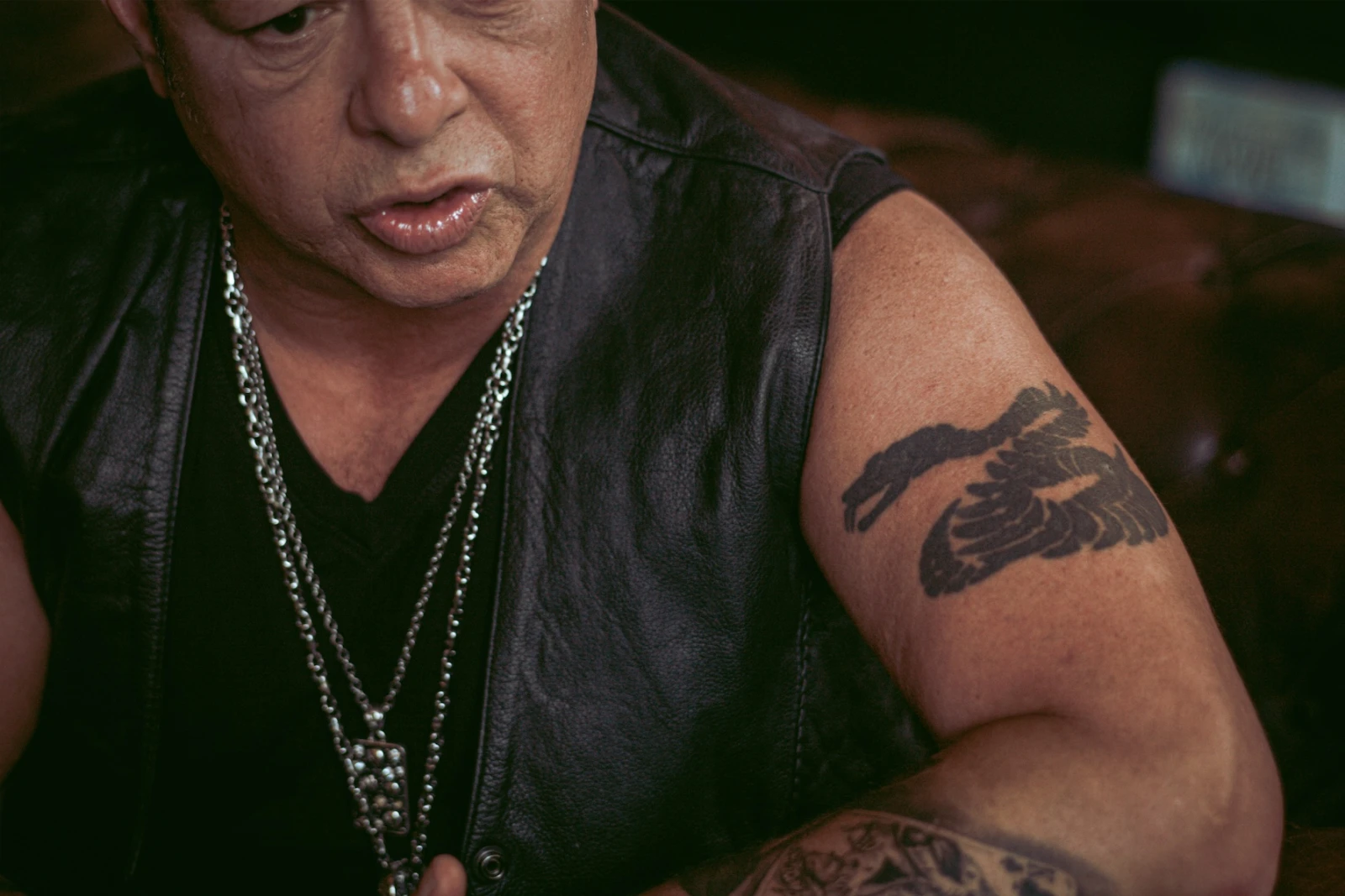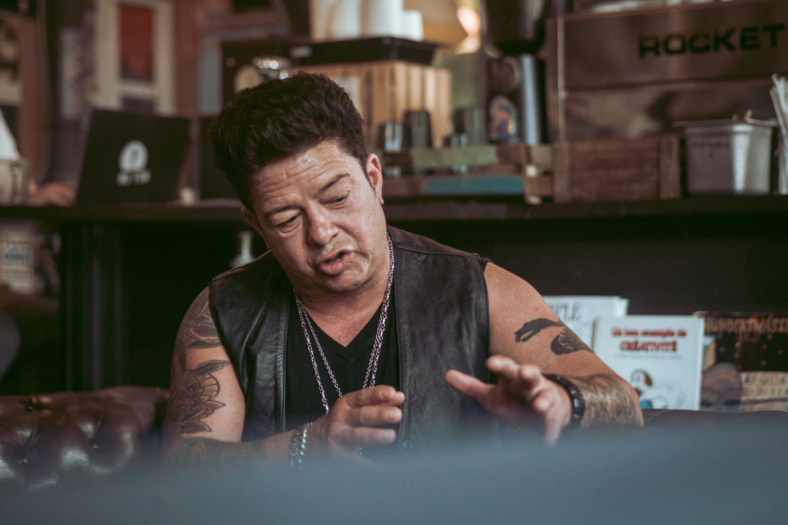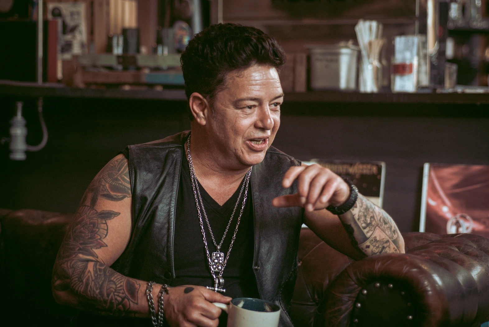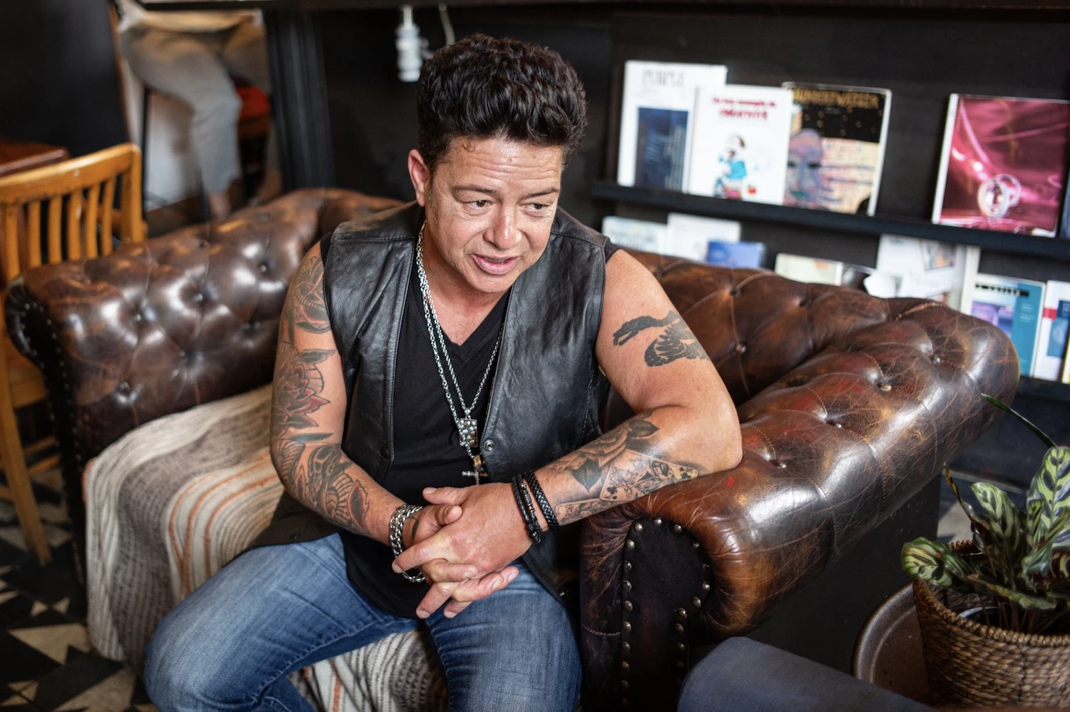 Vêtu d’une veste de cuir sans manches et d’une quantité impressionnante de bijoux, Éric Lapointe ne passe pas inaperçu dans le café bondé, un établissement discret et un peu bohème au nord du Plateau-Mont-Royal. Fidèle à l’image que l’on se fait de lui.