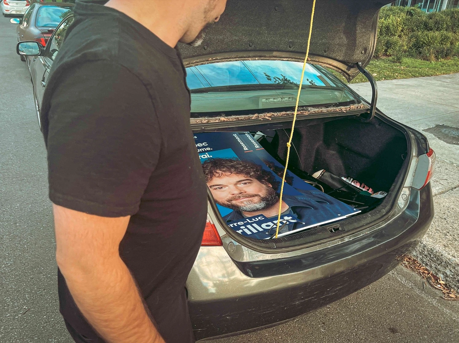 Hans décrit Pierre-Luc Brillant, 44 ans, comme un jeune politicien super disponible qui croit en l’indépendance pour les bonnes raisons et peut bien représenter les intérêts citoyens de Rosemont. « C’est rafraîchissant d’avoir un artiste comme candidat et la réception est vraiment bonne », avance-t-il en sortant les affiches de sa berline.