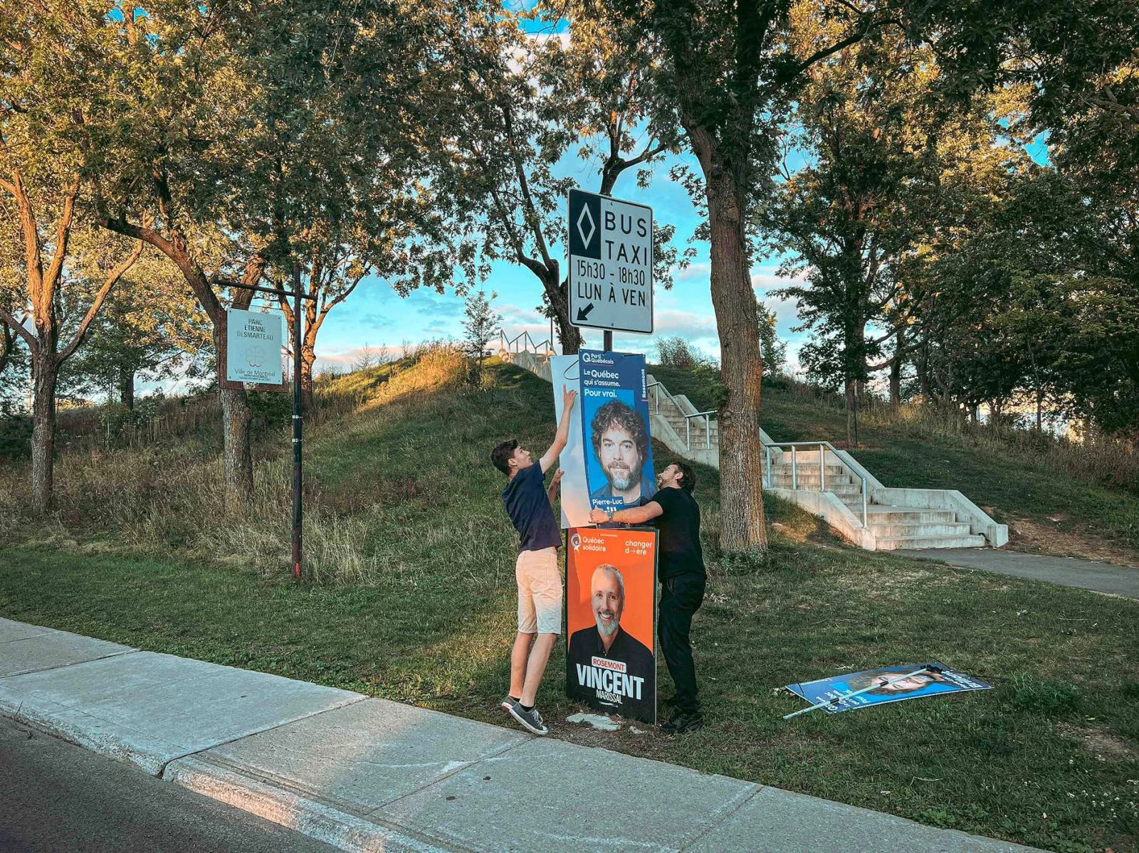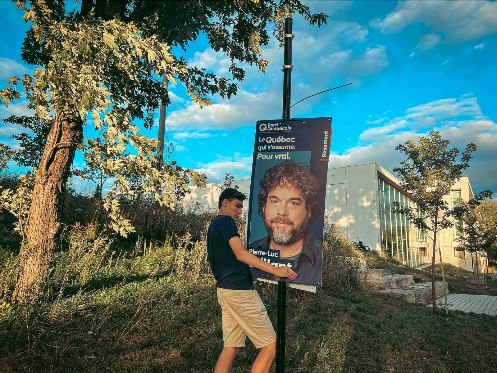 Pour mieux saisir l’engagement de la fibre péquiste actuelle, j’ai retrouvé Hans Bessette-Morin et Alexis Bastien, deux fidèles du parti qui m’ont gentiment accueilli pour une virée d’affichage dans la circonscription de Rosemont, où se présente le candidat Pierre-Luc Brillant, oui oui, le grand frère méchant dans C.R.A.Z.Y.!