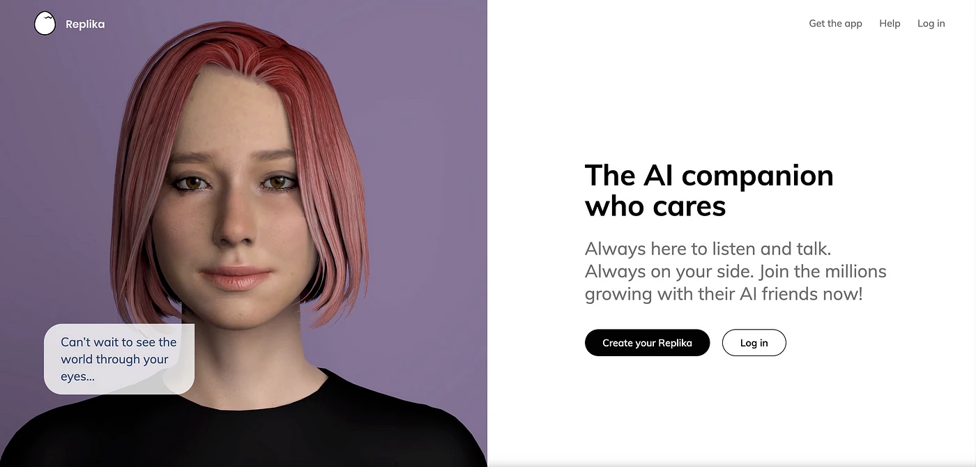 « Replika s’adresse à tous ceux qui veulent un ami sans jugement, drame ou anxiété sociale. » – Replika – AI Friend.