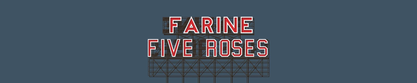 Comme Hollywood, Montréal a aussi SA typographie emblématique; l’enseigne Farine Five Roses, qui surplombe la ville et occupe plus ou moins 1/3 des cartes postales vendues sur le Vieux-Port. On retrouve également cette typo sur des chandails, des coussins, dans des expositions et même … sur des paquets de farine!