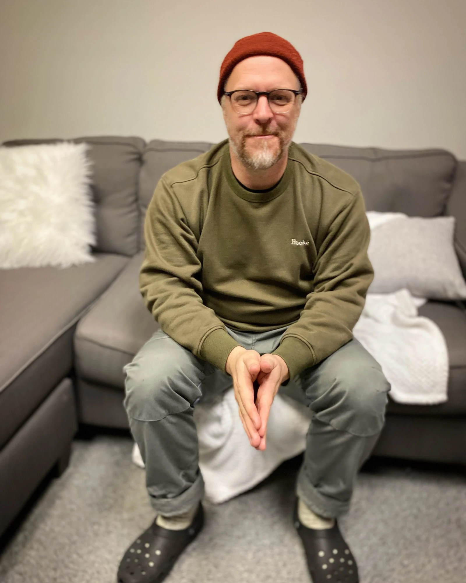 Fabien Cloutier m’accueille en vêtements décontractés et en Crocs avant de s’échouer dans un sofa en face de moi.