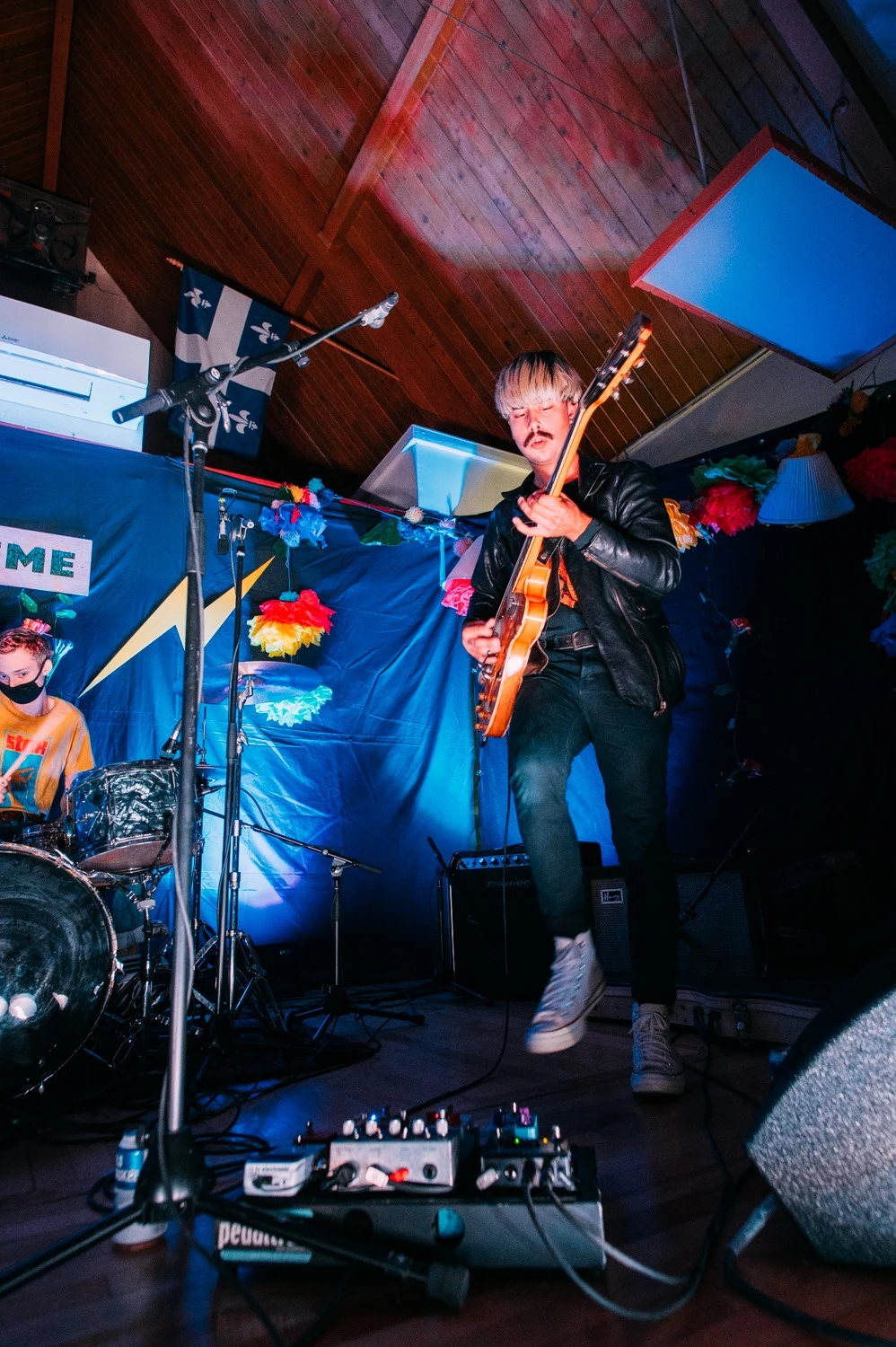Yves (remember him?) nous attendait devant pour nous amener au show de Gab, qui devait être en extérieur. La météo n’étant pas particulièrement clémente à Rouyn ce week-end, la performance fut déplacée au Club de l’âge d’or (no joke), salle inusitée, mais en même temps parfaite pour le côté un peu ludique du chanteur.