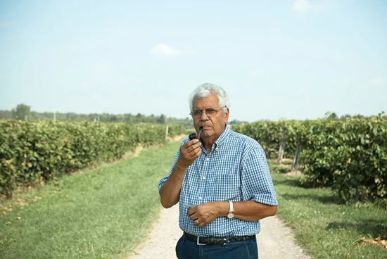 C’est d’ailleurs pour cette raison que le petit homme en chemise de vichy bleu et blanc — qui me guette au moment de mon arrivée en fumant sa pipe — a accepté qu’on parle de lui dans ces pages; parce qu’il a trouvé la paix parmi les vignes. Aujourd’hui, il veut qu’on discute de son vin sec (ma foi, savoureux) et de ses cépages rustiques. De tout, évidemment, sauf de politique, de la commission Gomery, du scandale des commandites, de Jean Chrétien ou de Paul Martin.