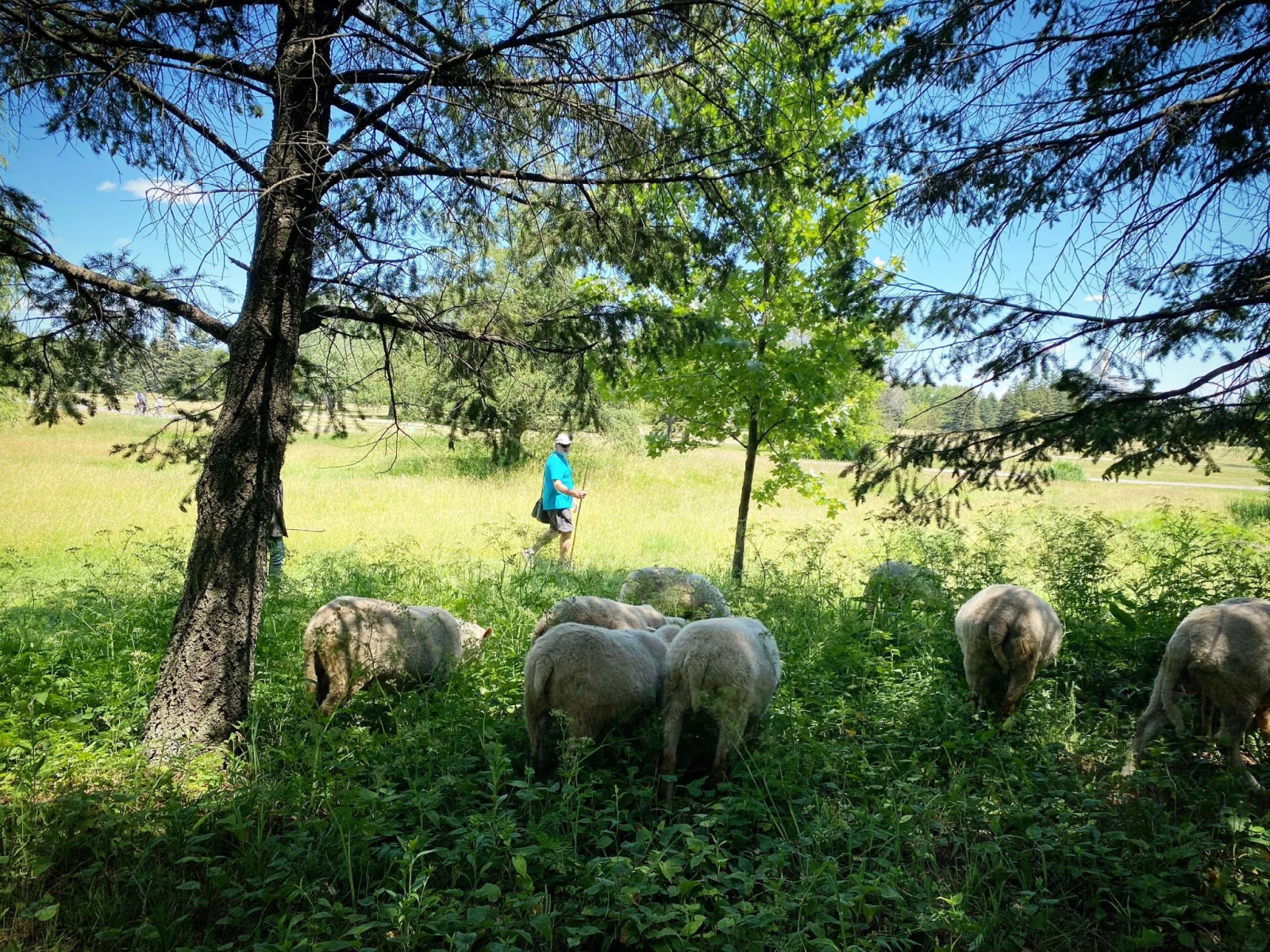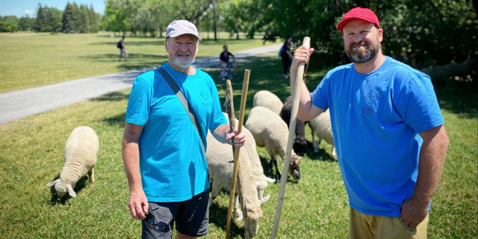 Notre noble mission : garder (en vie) les seize moutons deux heures par semaine, pendant qu’ils jouent les tondeuses dans le cadre d’un projet d’écopâturage urbain. Les moutons passent leur quatrième été au parc, mais c’est notre première à titre de bénévoles.