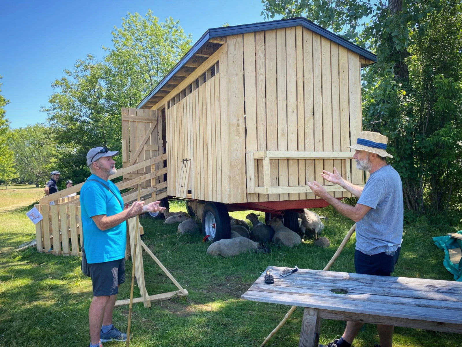 Des badauds s’amènent nombreux pour voir les moutons. Continuellement d’ailleurs. Des élèves d’une école secondaire tout près, des parents avec des bébés en poussette, des randonneurs, des cyclistes : on découvre vite que gérer les visiteurs demande plus d’énergie que gérer les moutons.