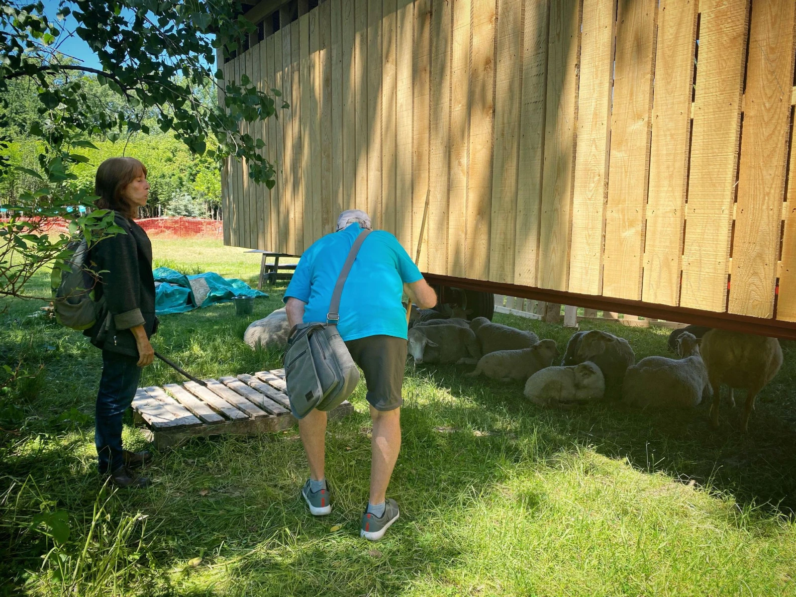 On avait à peine barré nos bikes qu’Annie nous racontait son anecdote de morsure de brebis pendant que mon père fraternisait de son bord avec Gérard, un autre bénévole qui venait de finir son shift avec Mélissa et Louis. «J’aime venir le matin quand c’est plus frais et calme, avec le son de la ville au loin», décrit le sympathique Gérard, un retraité ayant grandi en Savoie, qui vient depuis trois ans prendre sa puff de ruralité.